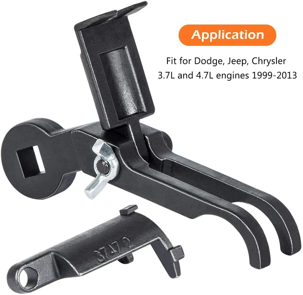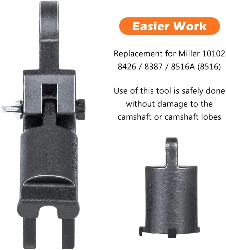 Great Compatibility — Fits for Dodge, Jeep, Chrysler 3.7L and 4.7L engines 1999-2003. This combination tool is similar but stronger than the originals. Superior Quality — Premium grade CNC machined heavy duty steel with black anodized, durability, anti-corrosion and anti-rust, high precision and hardness to provide a much longer service life. Upgrade Design — Specialty used to compress the valve springs and access the keeper which is needed when changing the valve springs. Also can be switched over to the rocker arm remover to remove the camshaft, rocker arms and hydraulic lash adjusters on 3.7L & 4.7L. Easier Work — Replacement for Miller 8426, 8387, 8516A and 10102. Use of this tool is safely done without damage to the camshaft or camshaft lobes. Product Description Valve Spring Tool (3747-1,3747-2) Replacement for Miller 8426 and 8387. Remove and install valve springs safely without damage to the camshaft or camshaft lobes. Compress the valve springs and access the keeper, which is needed when changing the valve springs This special valve spring compressor is used with a 3/8" breaker bar to service valve springs in 4.7 and 3.7 Liter Engines. Rocker Arm Remover Installer (3747-1, 3747-3) Replacement for Miller 8516A or original part 8516. Remove and install rocker arms safely without damage to the camshaft or camshaft lobes Remove the camshaft, rocker arms and hydraulic lash adjusters on 3.7 and 4.7 Liter engines 1999-2013. 8516A Rocker Arm Remover 2006 (Ram Truck, Durango, Liberty, Dakota, Grand Cherokee, Commander) - Systems (9 - Engine, 3.7L, 9 - Engine, 4.7L) 2007 (Ram Truck, Durango, Aspen, Nitro, Liberty, Dakota, Grand Cherokee, Commander) - Systems (9 - Engine, 3.7L, 9 - Engine, 4.7L) 2008 (Ram Truck, Durango, Aspen, Nitro, Liberty, Dakota, Grand Cherokee, Commander) - Systems (9 - Engine, 3.7L, 9 - Engine, 4.7L) 2009 (Ram Truck 1500, Durango, Aspen, Nitro, Liberty, Dakota, Grand Cherokee, Commander) - Systems (9 - Engine, 3.7L, 9 - Engine, 4.7L) 2010 (Ram Truck 1500, Nitro, Liberty, Dakota, Grand Cherokee, Commander) - Systems (9 - Engine, 3.7L, 9 - Engine, 4.7L) 2011 (Ram Truck 1500, Nitro, Liberty, Dakota) - Systems (9 - Engine, 3.7L, 9 - Engine, 4.7L) 2012 (Ram Truck 1500, Liberty) - Systems (9 - Engine, 3.7L, 9 - Engine, 4.7L) 2013 (Ram Truck 1500) - Systems (9 - Engine, 4.7L) 8426 Valve Spring Compressor 2004-2009 Dodge Durango 3.7, 4.7 Engine 2005-2011 Dodge Dakota 3.7, 4.7 Engine 2005-2014 Jeep Grand Cherokee 3.7, 4.7 Engine 2005-2010 Jeep Commander 3.7, 4.7 Engine 2007-2009 Dodge Aspen 3.7, 4.7 Engine 8426 Valve Spring Compressor 2006 (HB, ND, WK, XK) - Systems (9 - Engine, 3.7L) 2007 (HB, HG, ND, WK, XK) - Systems (9 - Engine, 3.7L, 9 - Engine, 4.7L) 2008 (HB, HG, ND, WK, XK) - Systems (9 - Engine, 3.7L, 9 - Engine, 4.7L) 2009 (HB, HG, ND, WK, XK) - Systems (9 - Engine, 3.7L, 9 - Engine, 4.7L) 2010 (ND, WK, XK) - Systems (9 - Engine, 3.7L) 2011 (ND) - Systems (9 - Engine, 3.7L) 8387 Valve Spring Compressor 2006 (DR, HB, KJ, ND) - Systems (9 - Engine, 3.7L, 9 - Engine, 4.7L) 2007 (DR, KA, KJ) - Systems (9 - Engine, 3.7L) 2008 (DR, KA, KK) - Systems (9 - Engine, 3.7L) 2009 (DS, KA, KK) - Systems (9 - Engine, 3.7L) 2010 (DS, KA, KK) - Systems (9 - Engine, 3.7L) 2011 (DS, KA, KK) - Systems (9 - Engine, 3.7L) 2012 (DS, KK) - Systems (9 - Engine, 3.7L)