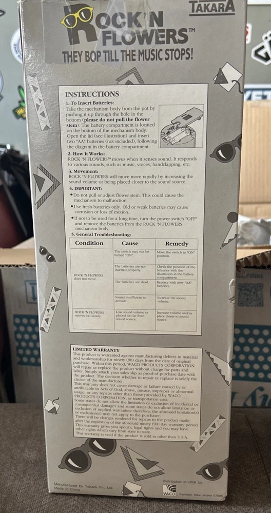Rock'n Flowers Dancing Flower Animated Bop Music 1988 Takara Works VTG 80s Holly