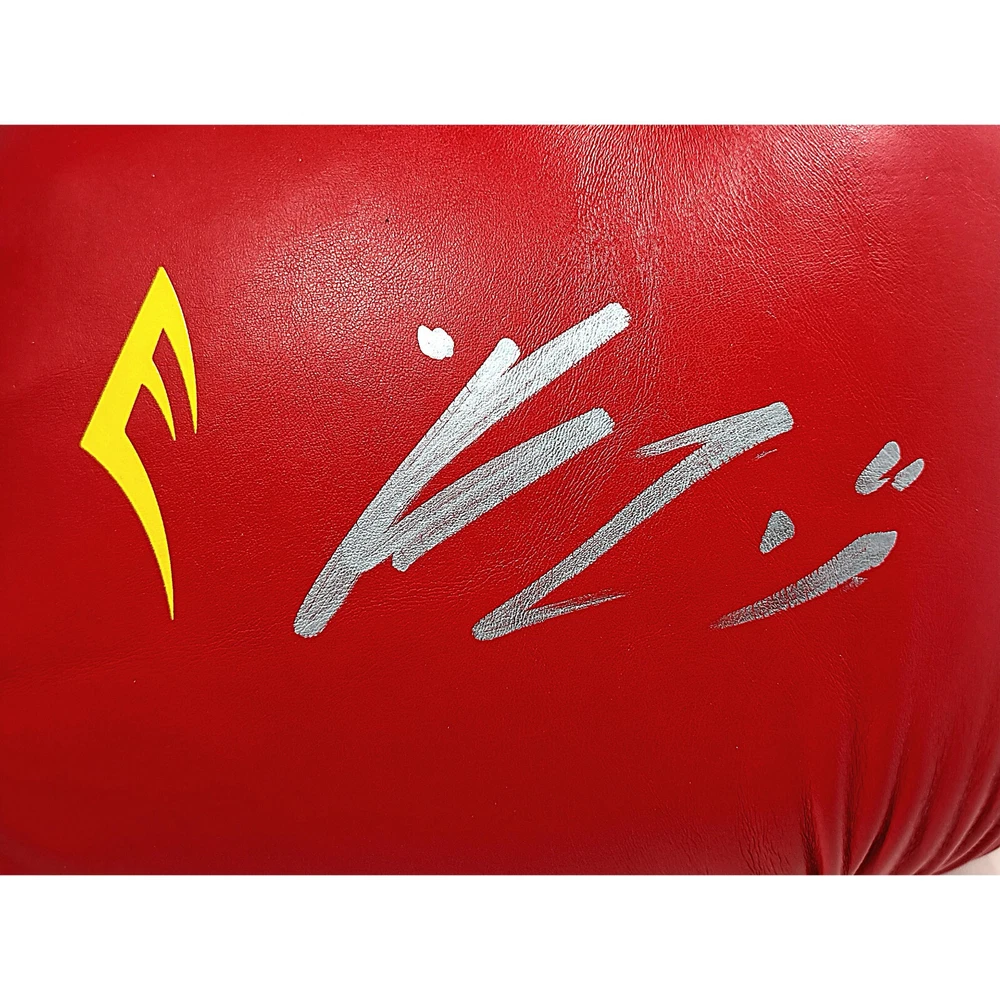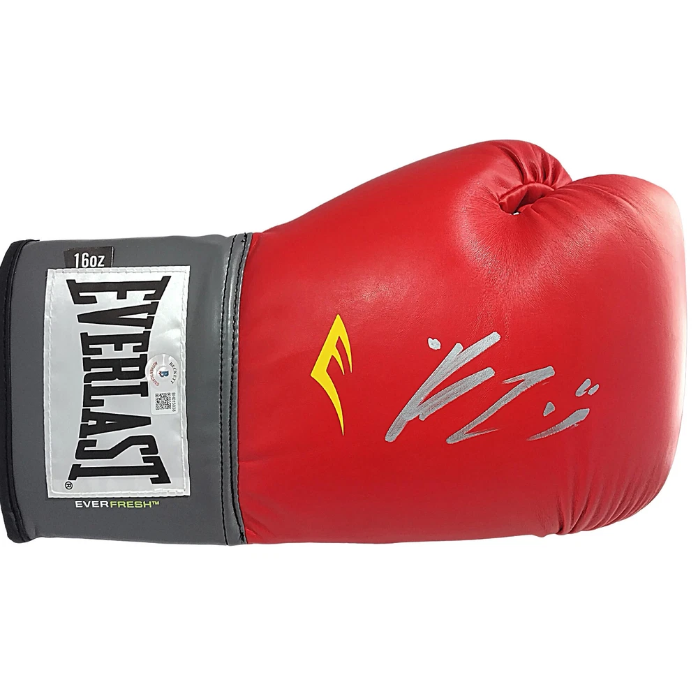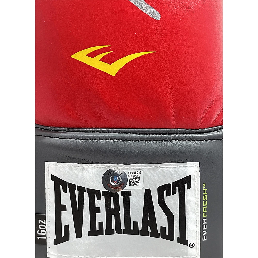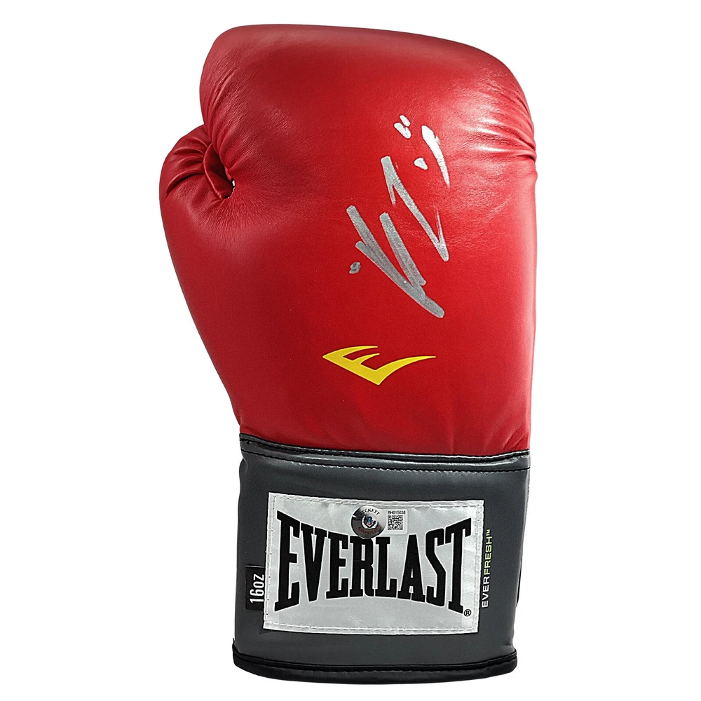 This is a rare opportunity to own a autographed boxing glove signed by Rolando Romero. The glove is red in color and made by Everlast. The autograph has been authenticated by Beckett Authentication Services (BAS) and come with a certificate of authenticity. The glove is perfect for any boxing fan or collector of sports memorabilia. The glove are a great addition to any collection and are sure to be a conversation starter. Don't miss out on this opportunity to own a piece of boxing history! Autographed in Silver Sharpie. Brand / Model: Everlast Boxing Glove (Size 16). This signature has been authenticated by the experts at Beckett Authentication Services. Certificate number BH015038. **Please Note: As of May 2022, Beckett Authentication Services no longer will be issuing Certificate of Authenticity cards. Please scan the QR code on the certification sticker, to confirm the authenticity, and all pertinent information, within the Beckett Authentication Database. This change will start with the certificate number sequence BF.