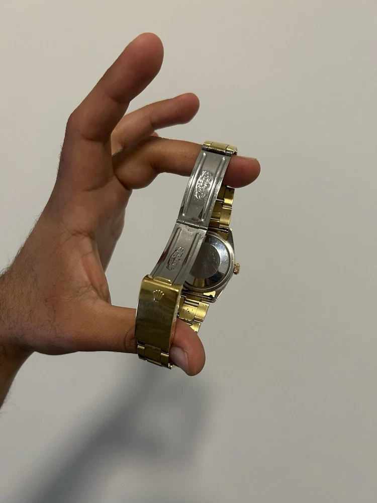 Rolex Date 18k Gold plated with Gold shell case stainless steel 34mm has signs of wear inside bracelet comes with certification of authenticity and watch box. Will be delivered with FREE shipping. Happy bidding and God Bless!