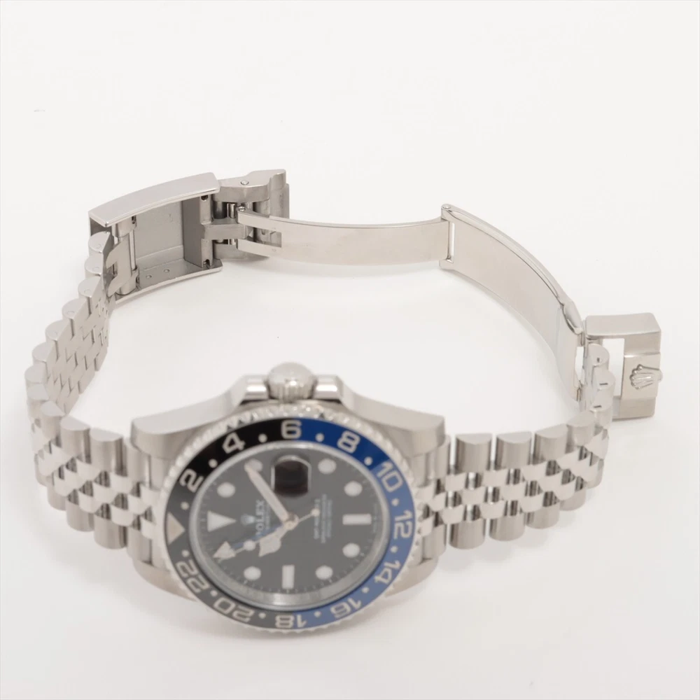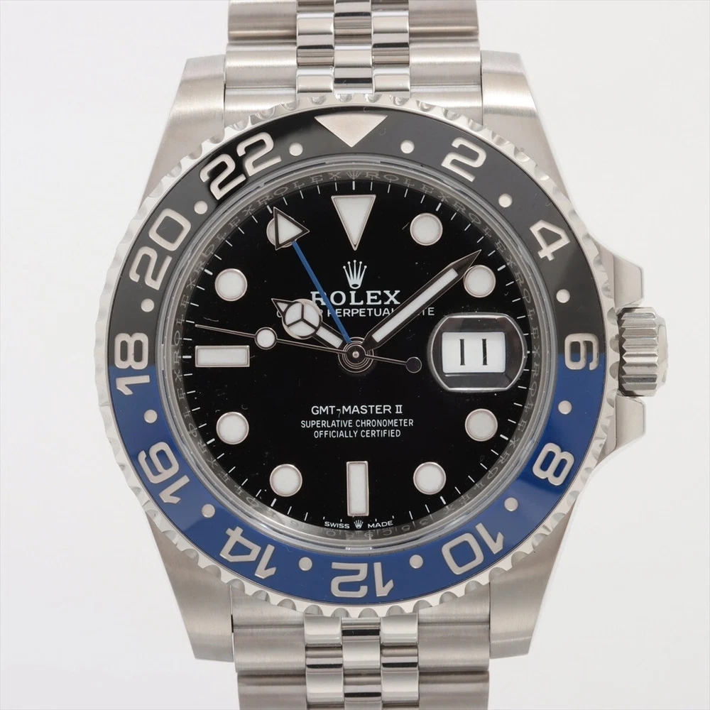 Rolex GMT-Master II 126710BLNR "Batgirl" - Mint Condition - Full Set with 2020 Warranty Card Up for sale is the sought-after Rolex GMT-Master II 126710BLNR, affectionately known as the "Batgirl," featuring the distinctive black and blue Cerachrom bezel and the elegant Jubilee bracelet. This timepiece combines a sporty aesthetic with sophisticated style, making it a favorite among collectors and enthusiasts. Condition: Mint Condition: Lightly worn with minimal signs of wear, no major scratches or dings. Unpolished: Retains original factory finish. Crystal: Flawless with no marks or chips. Bracelet: Jubilee bracelet in excellent condition with no stretch, full links included. What’s Included: Original Rolex Box Warranty Card Dated 2020 Full Set: Includes user manuals, green hang tag, and warranty card holder. Key Features: Model: Rolex GMT-Master II 126710BLNR Case Size: 40mm stainless steel Oyster case Dial: Black with luminous hour markers Bezel: Black and blue Cerachrom ceramic bezel (also known as the "Batman" bezel) Bracelet: Jubilee bracelet in stainless steel with Oysterlock safety clasp Movement: Rolex Calibre 3285 with 70-hour power reserve and GMT functionality This is a full set watch in excellent, mint condition. The "Batgirl" on the Jubilee bracelet offers a refined and comfortable wearing experience while maintaining the GMT-Master II’s iconic sporty look. Shipping: Fully insured and tracked shipping available. Local pick-up option for verified buyers.
