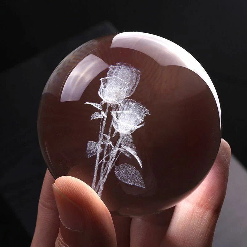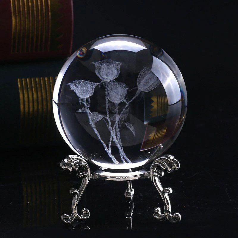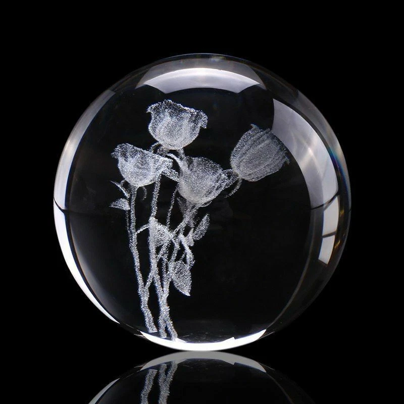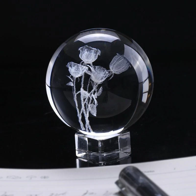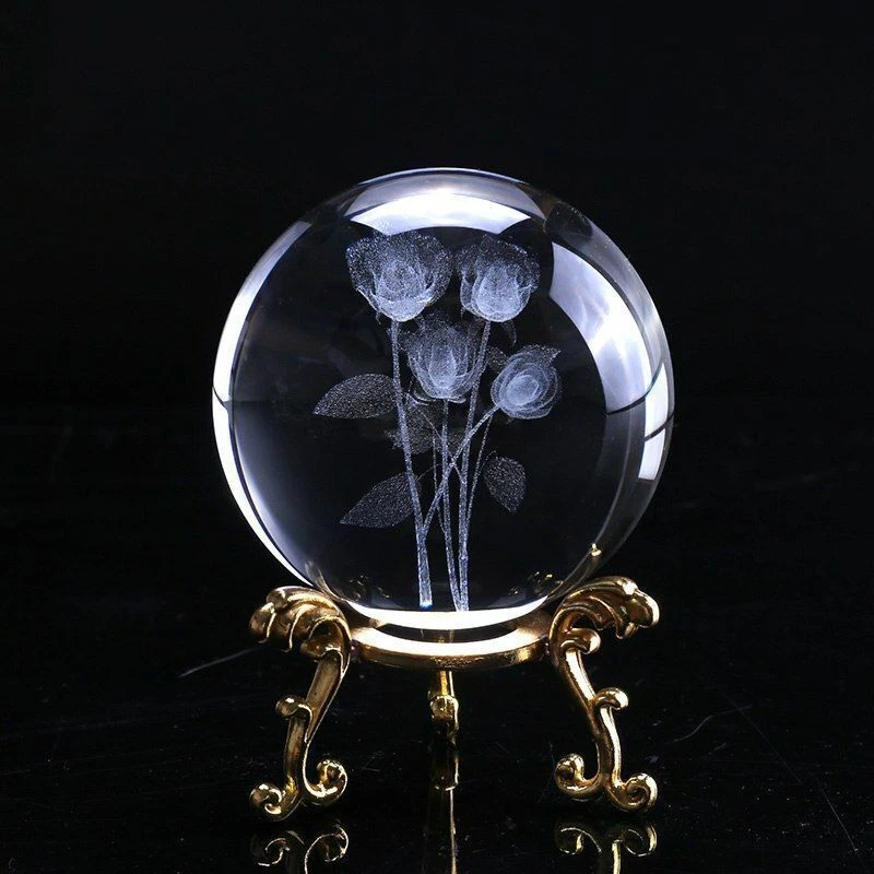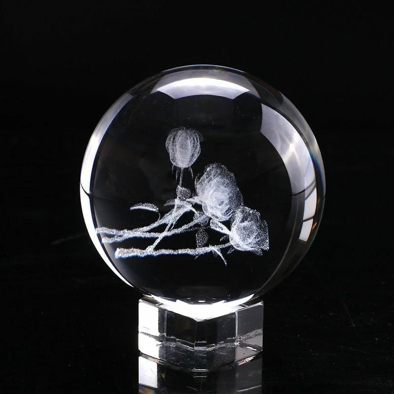 Rose Crystal Ball Miniature 3D Laser Engraved 60mm Globe Glass Sphere Home Decor Product Details: Item Type: Miniature Item Material: K9 Crystal Size: 60 mm Weight: 285 g Pattern: Love, Roses Color Options: Just Ball, Crystal Base, Silver Base, Gold Base Feature: 3D Laser Engraved The package consists of: 1 x Crystal Ball Miniature Note: Due to different computer monitors, colors of the product might appear slightly different compared to ones you see in the pictures.