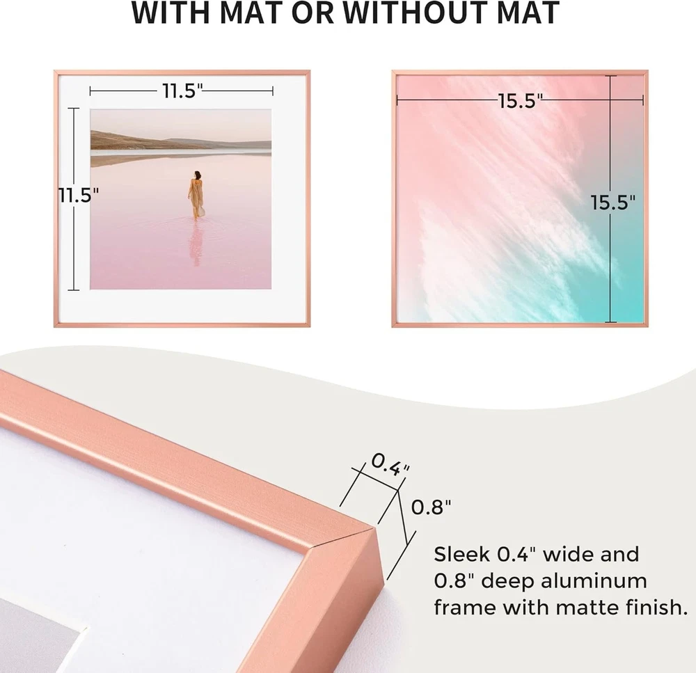 Rose Gold Metal Picture Frame 16x16 with 12x12 Mat - Set of 3 Elegant Displays ‹ › ‹ › ‹ › ‹ › ‹ › ‹ › ‹ › ‹ › ‹ › Rose Gold Metal Picture Frame - Set of 3 Elegant Displays Elevate your wall décor with our stunning 16x16 Rose Gold Metal Picture Frames, complete with a 12x12 mat, perfect for showcasing your cherished memories in a sophisticated manner. Features: Modern Design: Crafted from premium aluminum alloy, these lightweight yet sturdy frames are the perfect choice for enhancing your home aesthetic. High Definition Tempered Glass: Enjoy the clarity and protection of our high-quality tempered glass that minimizes bending, reflections, and scratches while ensuring utmost safety with polished edges. Versatile Display Options: Easily mount your frames vertically or horizontally with included hanging hardware, allowing you to maximize your display space. Safe Packing: Each frame is securely shrink-wrapped and reinforced with corner protectors, ensuring maximum protection during transit. Perfect Decoration & Gift: These frames complement various settings, making them ideal for homes, offices, hotels, restaurants, and as thoughtful gifts for family and friends. Benefits: Durable and chic design that seamlessly blends with your existing décor. Exceptional clarity and safety for your cherished photos. Easy to hang and reposition according to your needs. Arrives in perfect condition, ready to display your memories. Versatile for personal use or as a heartfelt gift. Why choose our Rose Gold Metal Picture Frames? Experience the perfect union of elegance and functionality with our Rose Gold Metal Picture Frames. Each frame is meticulously designed and handcrafted with high-quality materials, offering a perfect home for your favorite photos. The modern aesthetic, coupled with the practicality of tempered glass and versatile display options, makes these frames a standout choice. Whether for yourself or as a gift, indulge in the luxurious way to showcase your memories. Don't wait to transform your space—order your set of Rose Gold Metal Picture Frames today and bring your memories to life! Shipping Free & Fast Shipping - We offer free shipping to most of the USA with a normal delivery time of 3-7 days. However, due to the current situation, additional delivery time (up to 3 weeks) may be required for some items. Alternative Carriers - We may use alternative carriers (e.g. USPS, FedEx, UPS, etc.) to ensure your package arrives safely and on time. Due to the use of multiple carriers, we are unable to provide a tracking number automatically. Handling Time - Orders are processed and shipped within 1-2 business days of receiving cleared payment. Shipping Restrictions - Shipping to Alaska, Hawaii, Puerto Rico, Guam, and other US territories may incur shipping charges or delivery restrictions. Please contact us before ordering, or your order can be refunded/cancelled. State Restrictions - There may be restrictions based on your state of purchase. For example, certain items may not be shipped to California due to state regulations. Contact for Tracking Updates - If you require tracking updates or have any concerns about the delivery of your order, please feel free to contact us, and we will be happy to assist you. Return 30-Day Hassle-Free Returns - We want you to be completely satisfied with your purchase. If you are not, you can return the item within 30 days of receiving it for a full refund or exchange. Easy Return Process - To start a return, simply contact us and we will provide you with a prepaid return shipping label and detailed instructions. Restocking Fee - There are no restocking fees for returns. However, the buyer is responsible for return shipping costs if the return is not due to a seller's error. Refund Processing Time - Refunds will be processed within 5 business days of receiving the returned item in its original condition. Payment We accept all major credit cards, PayPal, and Apple Pay for your convenience. Your payment information is secure and encrypted to ensure a safe and seamless transaction. Please complete your payment within 3 days of purchase to avoid any delays in shipping. Feedback Your feedback is extremely important to us. We strive to provide the best products and customer service possible. If you are satisfied with your purchase, please take a moment to leave us a positive review. If you have any concerns or issues with your order, please contact us before leaving negative feedback. We are committed to resolving any problems and ensuring your satisfaction. Contact Us If you have any questions or concerns, please feel free to reach out to our customer support team. You can contact us through the eBay messaging system. We are available Monday to Friday, 9:00 am to 5:00 pm EST, and we will do our best to respond to your inquiry within 24 hours. Buy it now and enjoy a pleasant shopping experience! UPC: Not Set Item Height (Interior): Not Set Item Width (Interior): Not Set Item Weight: Not specified Unit Quantity: 3 Features: None,Modern Design,High Definition Tempered Glass,Vertical & Horizontal Display,Intact Parts & Safe Packing,Perfect Decoration & Gift Brand: Unbranded Item Height: 16x16 Picture Frame Item Length: 16x16 Picture Frame Item Width: 16x16 Picture Frame Type: Picture Frame Material: Aluminum Suitable for Photo Size: 12 x 12 in Color: Rose Gold Photo Capacity: 3 Theme: Animals Shape: Square Style: Modern Occasion: Mother's Day Pattern: Roses Mounting: Wall Mounted Character Family: Not Set Character: Not Set Size: 16 x 16 in MPN: Not Set Country/Region of Manufacture: Not Set Glass Type: Tempered Glass Year Manufactured: Not Set Department: Not Set Box Frame Depth: Not specified Finish: Brushed Photo Insertion Type: Not specified Orientation: Portrait Era: 21st Century (2000-Now) Power Source: Not applicable Manufacturer Warranty: Not Set Time Period Manufactured: Not Set Model: Not Set Unit Type: Unit Personalize: Not Se