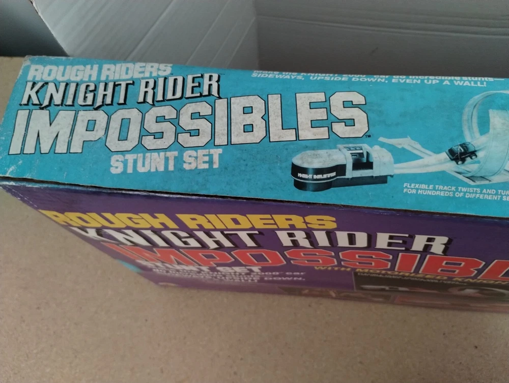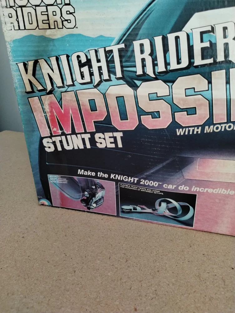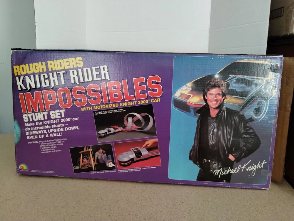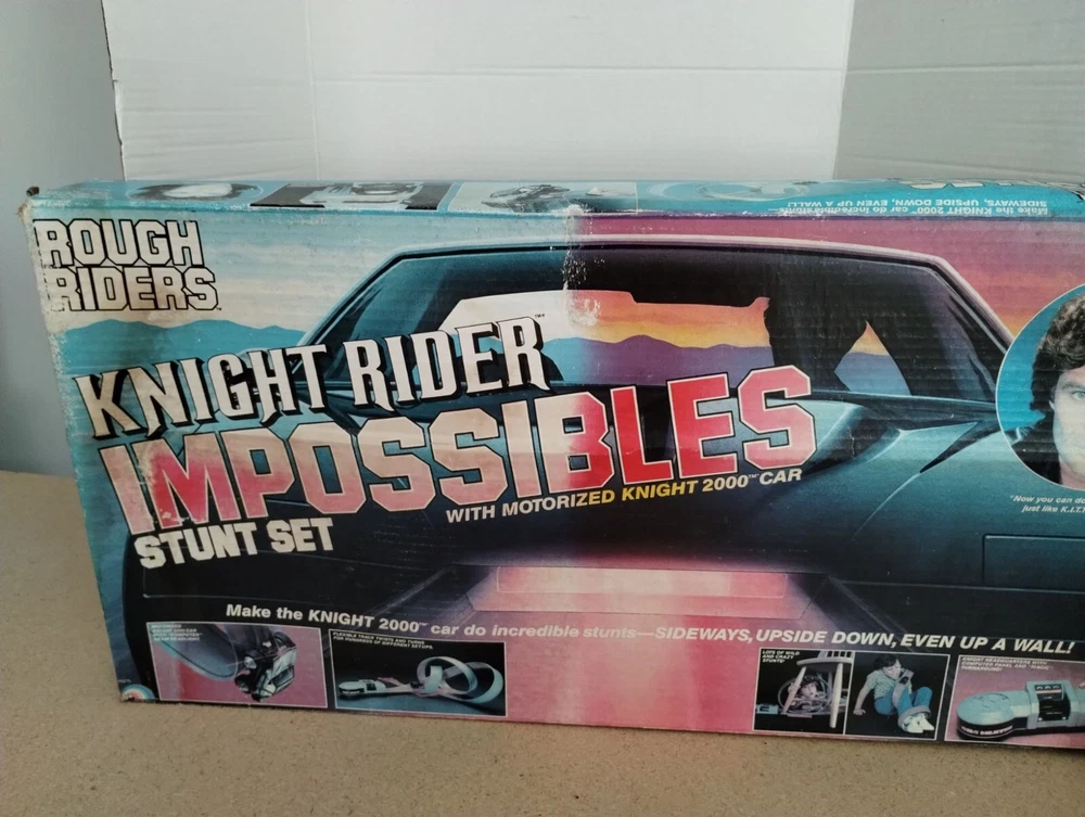 This Knight Rider Impossibles Stunt Set includes a motorized Knight 2000 vehicle and flexible tracks for executing dynamic stunts. The kit promotes imaginative play while enhancing motor skills. Featuring Michael Knight, this collectible is a nod to the iconic 80s show. • Includes motorized Knight 2000 car • Flexible 12-foot track • Entry/exit ramps and stunt platform • Connectors and joiners included • Universal City Studios licensed product Condition: Pre-Owned Like New