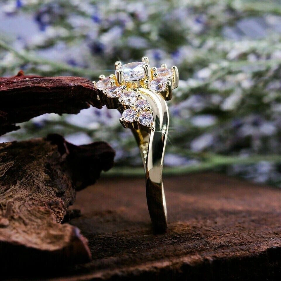 Round Cut Simulated Diamond Gorgeous Engagement Band Ring 14k Yellow Gold Plated