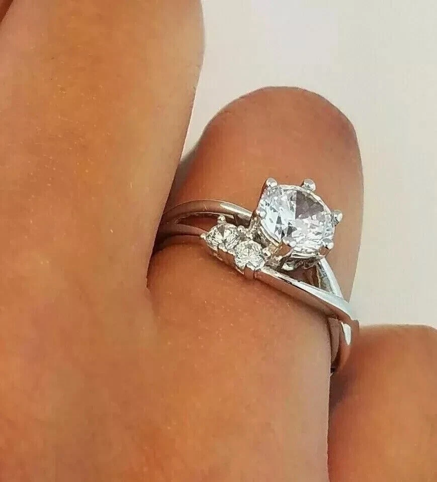 Round Cut Simulated Diamond Ring 14k White Gold Plated Women's Stunning Wedding