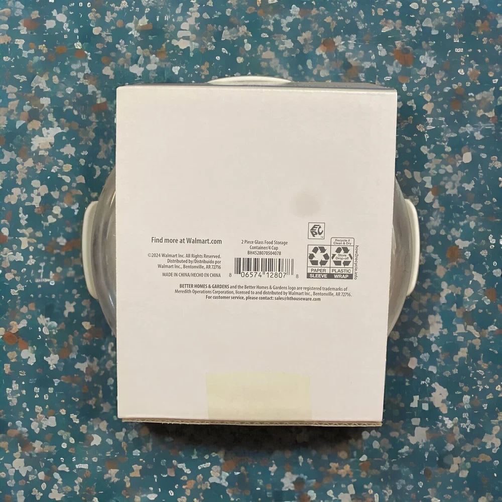 The Better Homes & Gardens Round Glass Food Storage Container is a set that includes one, round container with snap-on Tritan lid. Each container has a capacity of 960 ml and measures 5 inches in diameter, 3 inches in height, and 3 inches in depth. The containers are made of glass and the lid of a Tritan material. Perfect for storing food items, these containers are designed to keep your kitchen organized and your food fresh. Brand new and never used - stain resistant - air tight and leak proof tritan lid - bpa free