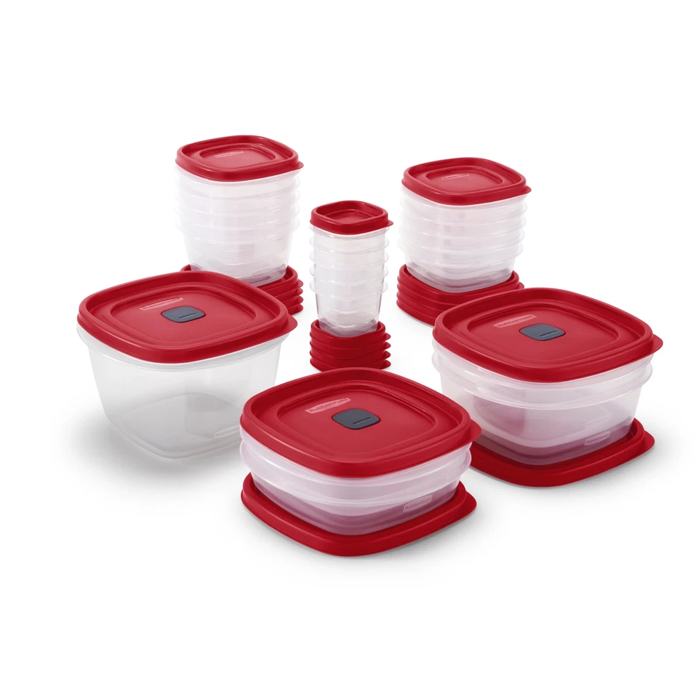 Easily store food, plus minimize kitchen clutter, by using Food Storage Containers with Easy Find Lids. These meal prep containers are easy to organize and help save space in your cabinets, plus, the 3- and 5-cup sizes feature a built-in lid vent for splatter-resistant microwaving, The lids snap to each other and to the bottom of the containers and are bright red, so they're always easy to find. Constructed from durable, BPA-free plastic, these food containers are built to withstand a wide range of temperatures and are dishwasher and freezer safe; the vented containers are fully microwave safe when the vent is opened. And thanks to their clear bases, it's easy to see what's inside. These food storage containers are great for meal prep; they feature Easy Find Lids that snap to bases and same-size lids; 3- and 5-cup containers feature a built-in top vent for splatter-resistant microwaving Lids snap together at bases to reduce clutter BPA free and dishwasher safe; vented food containers are fully microwave-safe with the vent open, while non-vented containers have microwave-safe bases; recommended for reheating only Thick, durable container walls for everyday use Set includes five 0.5-cup, four 1.25-cup, four 2-cup, two 3-cup, three 5-cup, one 5.5-cup, and one 8.5-cup containers with lids; 3-cup and 5-cup containers have vented lids