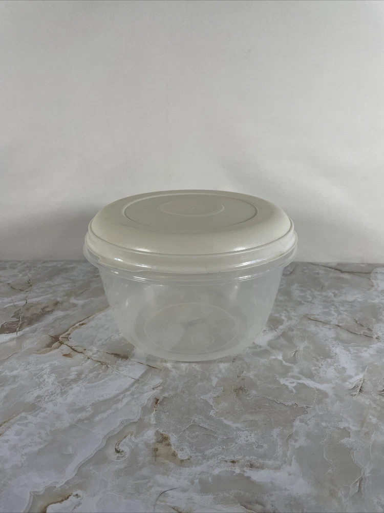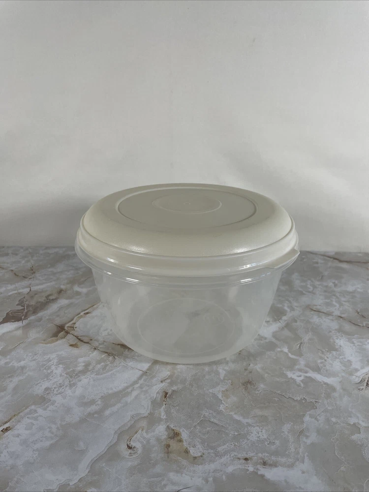 Item Width:8"Capacity:2.3 qtItem Length:8"Brand:RubbermaidSet Includes:LidColor:almond lid clear containerLid Type:Snap LidNumber of Items in Set:1Features:With LidType:Storage Containergtin13:Does not applyItem Height:5"Material:PlasticShape:RoundUPC:Does not apply