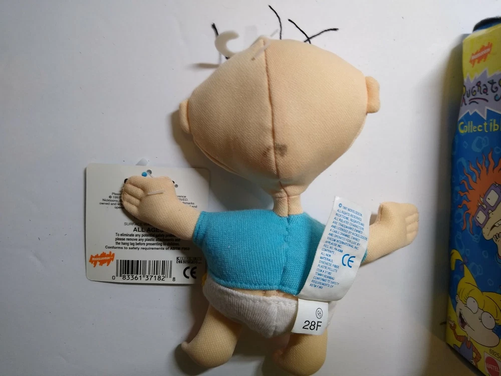 This is a set of two Rugrats plush figures from Mattel, featuring Tommy in his iconic blue shirt and red shorts, and a cute baby animal friend. The figures are still in their original packaging with tags from 1997, making them a great addition to any collection. The colors are vibrant and the attention to detail is impressive, capturing the spirit of the beloved Nickelodeon cartoon. These figures are perfect for fans of all ages and would make an excellent Christmas gift. Set of (2) items. (1) boxed vintage 1997 Rugrat collectible Tommy figure. And (1) Tommy plush figure with tags. Official Nickelodeon items made by Applause. This item has a dark spot of back as shown. Otherwise nice with hang tag. 6.5" tall. The boxed figure has lots of age wear with crushes, dings, sticker wear, creases, and some torn areas. 6.25" tall. Still has the plastic hanger on top with two of the three official tape seals in place so it was never opened. More vintage collectible items for sale in our store. Please review all the photos. Thank you.