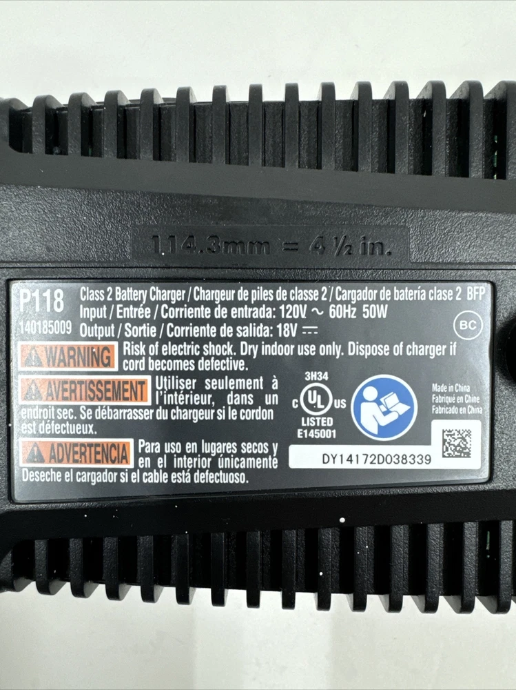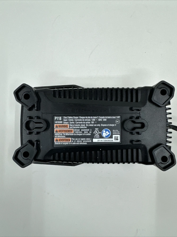 This Ryobi P118 18V ONE+ Lithium-Ion Battery Charger is the perfect addition to your power tool collection. With its advanced battery technology and high voltage of 18V, this charger ensures quick and efficient charging of your battery. The charger is designed in a sleek black color and is compatible with various Ryobi power tools. The charger has a battery capacity of charger only and does not come with a battery included. It is a type of battery charger and is suitable for home and garden use. The model number is P118 and the battery type is Li-Ion. This charger is a must-have for any DIY enthusiast and ensures that your power tools are always ready for use.