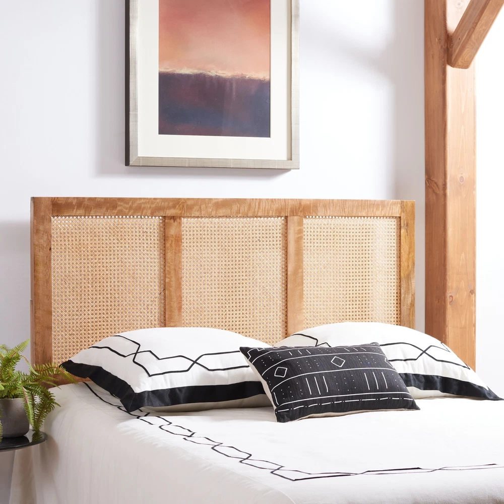This modern Vienna Cane Headboard brings a breezy, tropical feel to contemporary bedroom décor with its stylish mango wood rattan good looks. Vienna's natural finish is an apt complement to its cane construction, transforming bedroom decor into a calming, relaxed oasis. Free Shipping Over $49.99* Details SAFAVIEH Vienna Cane Headboard Product Description: This modern Vienna Cane Headboard brings a breezy, tropical feel to contemporary bedroom décor with its stylish mango wood rattan good looks. Vienna's natural finish is an apt complement to its cane construction, transforming bedroom decor into a calming, relaxed oasis.