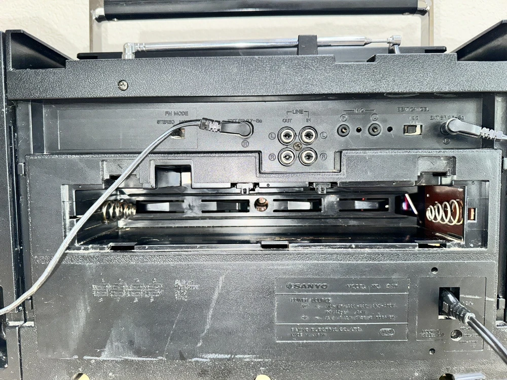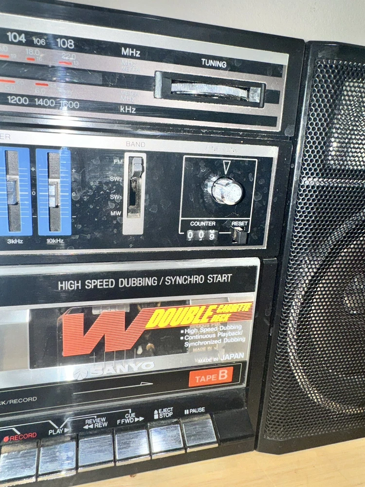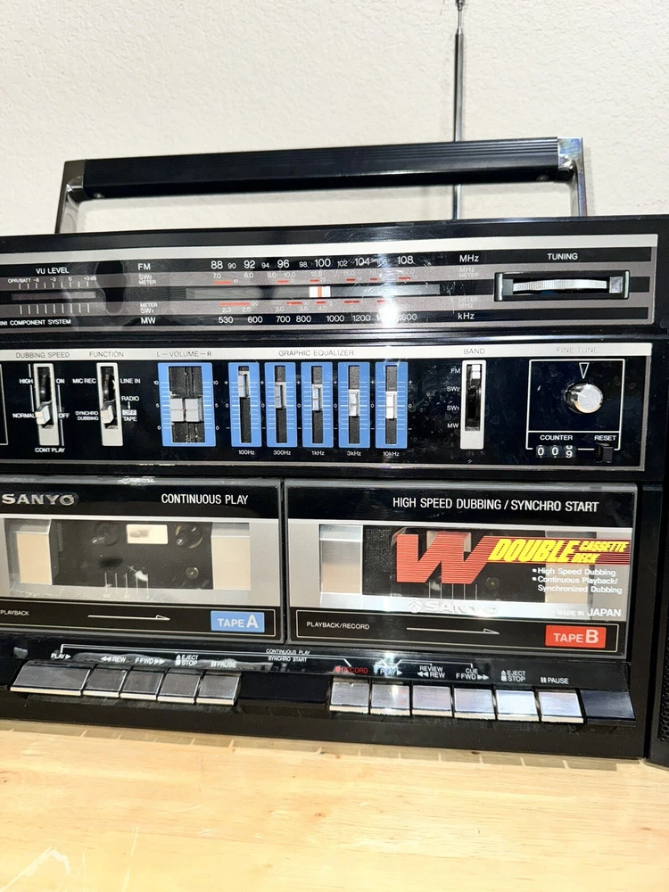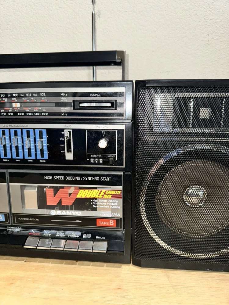 Take a trip down memory lane with this vintage SANYO C35 cassette recorder from the 1980s. Made in Japan, this boombox is perfect for those who love to listen to AM/FM radio or play their favorite cassette tapes. The black color and sleek design make it a stylish addition to any room. The product line is DIGITRADIO, and it's a great addition to any consumer electronics collection. This portable stereo and boombox is perfect for those who love to take their music on-the-go. Get your hands on this classic piece of audio history today. All in working condition! Very nice