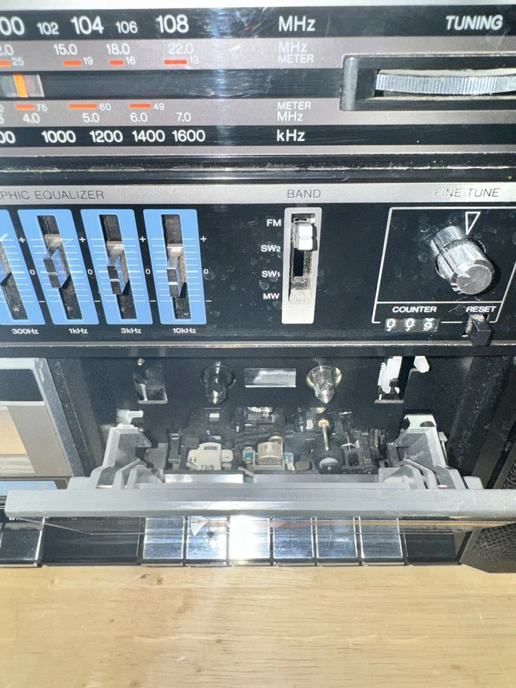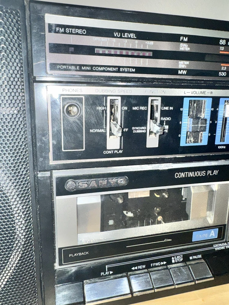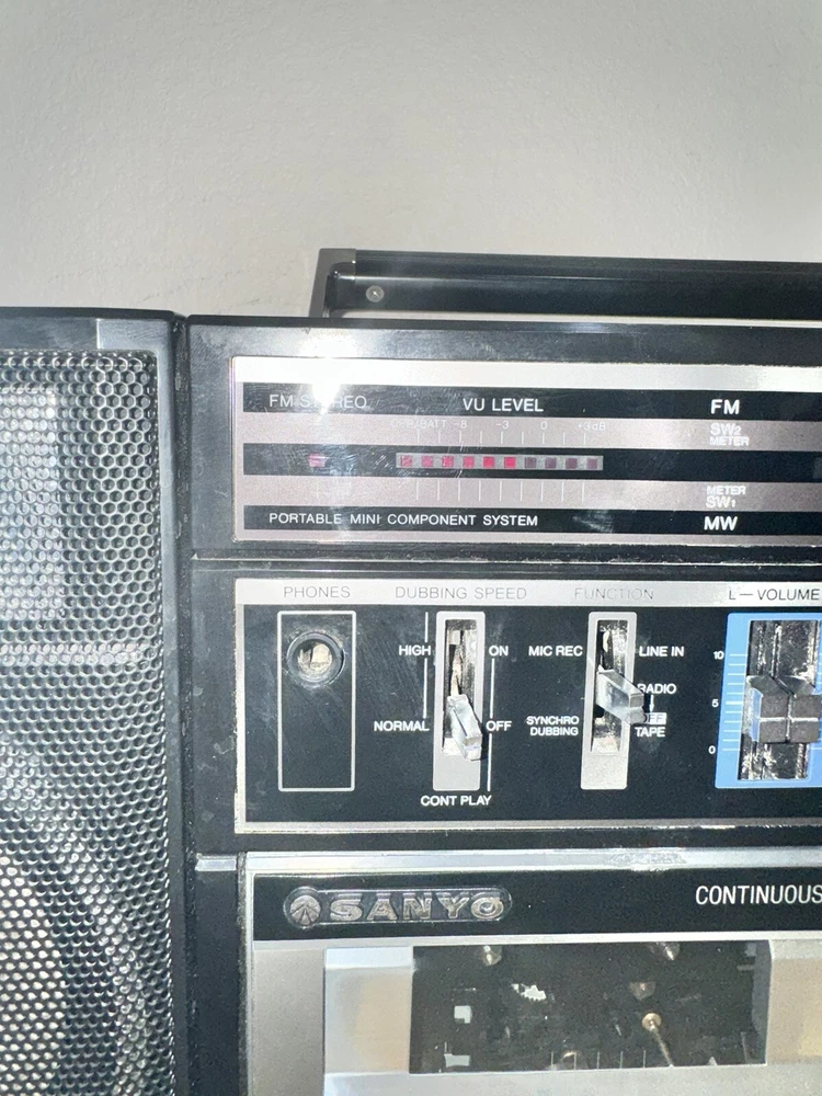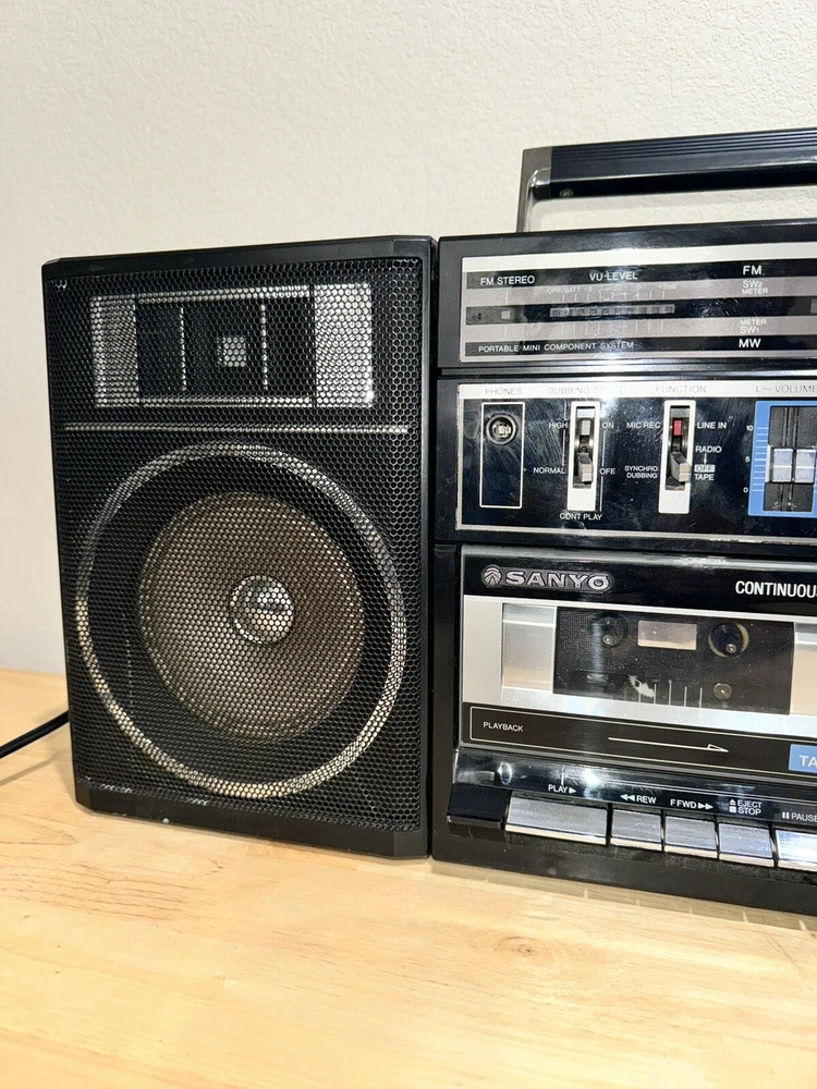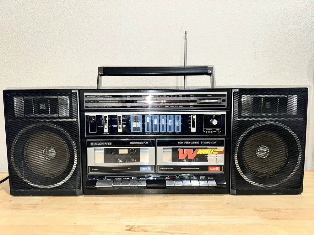 Take a trip down memory lane with this vintage SANYO C35 cassette recorder from the 1980s. Made in Japan, this boombox is perfect for those who love to listen to AM/FM radio or play their favorite cassette tapes. The black color and sleek design make it a stylish addition to any room. The product line is DIGITRADIO, and it's a great addition to any consumer electronics collection. This portable stereo and boombox is perfect for those who love to take their music on-the-go. Get your hands on this classic piece of audio history today. All in working condition! Very nice