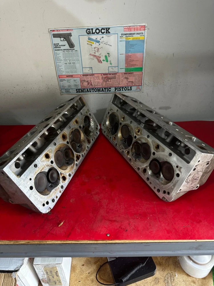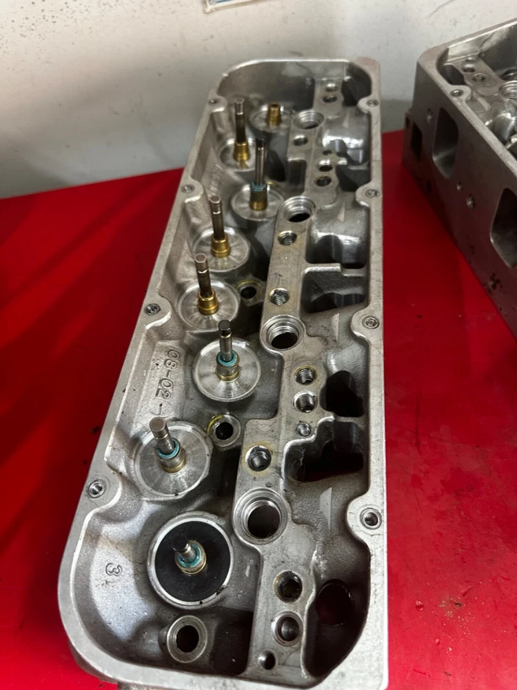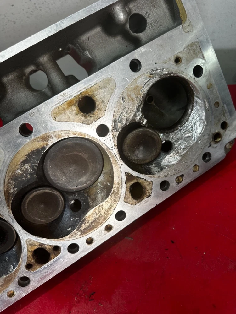 WILL ONLY SHIP TO THE LOWER 48 STATES! Bare set of SB2.2 Chevrolet aluminum heads that will need repaired. One hole with damage pictured with the broken exhaust valve still in place. Small amount of peckering on one other chamber on the other head that will easily clean up with a resurface. The guides are 5/16” exhaust, 7mm intake and use 2.180 and 1.600 valves. They are part number 12480011 and are dated 08-02. The intake ports measure right at 2.160 x 1.563. The heads are a matched set. Comes with what appears to be 14 usable valves that still have plenty of margin left to reface. They will come just as pictured. We ship only to the lower 48 United States and ship via UPS only!