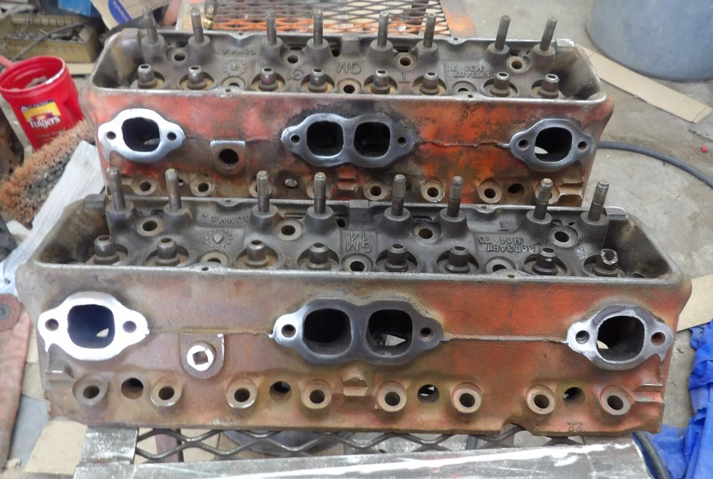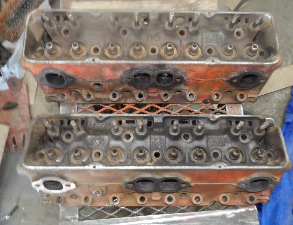 This is for 2 Bare GM SBC #3973487 Heads Date codes H-14-70 H-30-71 1970 71 Had 1.94/1.50 Valves They have been checked for cracks and have none.one valve guide is broke at top.No Reserve!