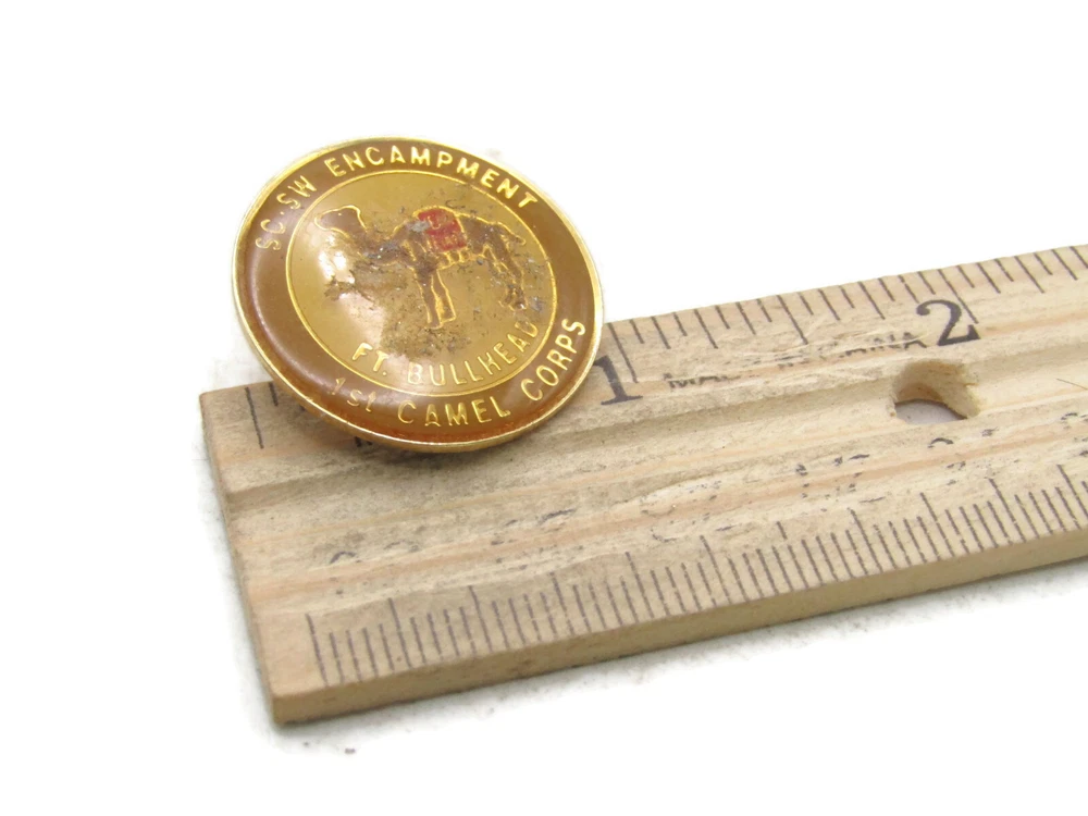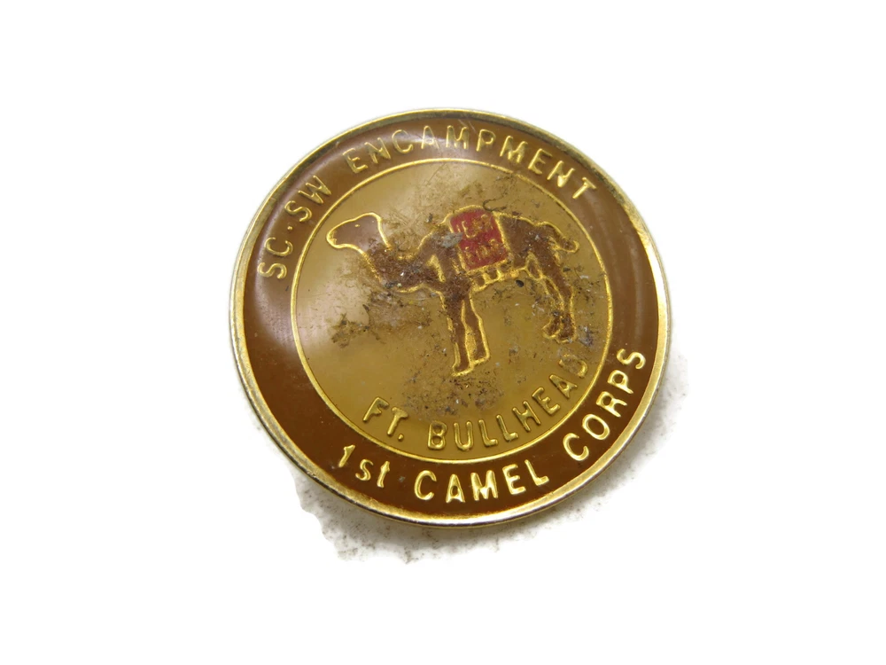 SC-SW Encampment Pin 1st Camel Corps Ft. Bullhead Gold Tone ~ Almost all of our items are vintage and will have various degrees of wear, but we really don't carry anything that we wouldn't own ourselves. Please take a look at the pictures for the all vintage pins to get the best idea of wear. ~