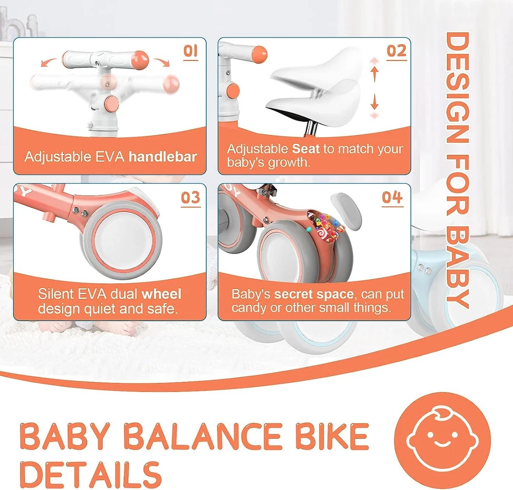 SEJOY YOUR ITEM BE HERE woho_care FIND YOUR ITEM IN STORE Special Offers Free&Fast Returns Free&Fast Shipping OUR STORE SELLER PROFILE SAVE THIS SELLER FEEDBACK SHOP NOW Item Display Features GROW IN FUN: Recommended ages for 10-36 months. The infant balance bike is the best birthday gift for toddlers to learn walking and riding. It helps to develop babies' balance, steering, coordination, and gain confidence at an early age. SAFELY RIDE: No pedal and fully widened closed wheel to avoid clamping baby's feet. 135 ° turning limit and gravity steering without leaving the ground to prevent the baby from turning over. STURDY & COMFORTABLE DESIGN: The balance bike equips sturdy carbon steel frame, anti-slip EVA handle, and a softly supportive seat.The mini balance bike wheels are non-slip, wear-resistant and non-destructive floor, and baby can ride indoors or outdoors. EASY TO RIDE: The baby bike seat heights and the handle angle are adjustable. Handlebar angle can be adjusted and locked to a front and rear 45°and 90° position. The height floor to the seat could be adjusted between 9”-11.8”. This design will meet the baby of different heights and ages. Their feet could touch the floor easily, and ride steadily with no fear. Your baby could still enjoy riding as the kid grows. PERFECT GIFT FOR BABIES: This baby balance bike is made of high-quality material. This ensures that they are safe for any baby. Safe design can be assured as gift for 1 year old boys and girls. Description: Great Gift for Your Baby A baby balance bike is a small ride-on without any pedals, meaning the children propels themselves forward by using their legs and can use the handlebars to change direction. The bikes are designed to be lightweight so they can be easily operated by the toddler and can usually be used on any surface, whether indoor or outdoor. Baby balance bikes and similar ride-on toys for toddlers help to develop their motor skills, give toddlers a sense of independence. Specification : Bike Type :Balance Bike Age Range: 10-36 month Weight: 4.7 lbs Color: Pink Style: Indoor, Outdoor Frame Material: Carbon Steel Wheel Material: Ethylene Vinyl Acetate (EVA) Seat Material :PU Wheel Size : 6 inches Diameter Number of Speeds :1 Product Dimensions:44×19×27cm Max load:25kg Special Feature: Adjustable Handlebars,Adjustable Seat Package Includes: 1 x Baby Balance Bike 1 x Instruction Features der Auktionsvorlage Logo Grafik im Header platzierbar animierte Artikelbilder-Galerie Call-To-Action Buttons (Kaufen, Beobachten etc.) animierte Tabs und Cross-Selling Darstellung 100+ Zahlungs- & Versand-Grafiken 600+ Icons zur Gestaltung Ihrer Angebote Unser Service Versand per E-Mail am selben Werktag kompetenter & schneller E-Mail Support inkl. Updates für zukünftige eBay Vorgaben anpassbar für eBay Listing Tools - z.B. JTL eazyauction, Magnalister, Plentymarkets, Afterbuy etc. (auf Anfrage) individuelle Layout- und Design-Änderungen (auf Anfrage) Kaufabwicklung 1 Sie erhalten innerhalb eines Werktages nach Zahlungseingang alle Dateien der Auktionsvorlage (HTML-Template, Grafiken, PDF-Anleitung) an Ihre bei eBay hinterlegte E-Mail-Adresse gesandt. 2 Die Auktionsvorlage wird auf den Käufer-Account angepasst. Teilen Sie Abweichungen des zu lizensierenden eBay Accounts bitte während des Kaufvorgangs mit. 3 Sollten Sie individuelle Anpassungswünsche haben setzen wir diese, je nach Umfang und Art gegebenenfalls kostenpflichtig, gerne für Sie um. 4 Sollten Sie Hilfe benötigen oder Fragen zur Bearbeitung und Nutzung des eBay Templates haben, steht Ihnen unser Support gerne zur Verfügung. Zahlung & Versand Zur Darstellung von Zahlungs- und Versand-Informationen erhalten Sie Zugriff auf über 600+ Grafiken und Icons . PayPal Kreditkarte Überweisung Hinweis Lorem ipsum dolor sit amet, consetetur sadipscing elitr, sed diam nonumy eirmod tempor invidunt ut labore et dolore magna aliquyam erat, sed diam voluptua. At vero eos et accusam et justo duo dolores et ea rebum. Stet clita kasd gubergren, no sea takimata sanctus est. Wichtig Lorem ipsum dolor sit amet, consetetur sadipscing elitr, sed diam nonumy eirmod tempor invidunt ut labore et dolore magna aliquyam erat, sed diam voluptua. At vero eos et accusam et justo duo dolores et ea rebum. Stet clita kasd gubergren, no sea takimata sanctus est. Highlight Lorem ipsum dolor sit amet, consetetur sadipscing elitr, sed diam nonumy eirmod tempor invidunt ut labore et dolore magna aliquyam erat, sed diam voluptua. At vero eos et accusam et justo duo dolores et ea rebum. Stet clita kasd gubergren, no sea takimata sanctus est. Fußnote Lorem ipsum dolor sit amet, consetetur sadipscing elitr, sed diam nonumy eirmod tempor invidunt ut labore et dolore magna aliquyam erat, sed diam voluptua. At vero eos et accusam et justo duo dolores et ea rebum. Stet clita kasd gubergren, no sea takimata sanctus est. Tags Nutzen Sie die Möglichkeit einzelne Wörter oder Merkmale hervorzuheben und so Tags zu erstellen. Further Details Store Category Electric Toothbrush USB Charging Inductive Charging Kids Water Flosser Humidifier Air Purifier Baby Bottle Warmer Massage Gun Sejoy focused on Personal Healthcare Devices Home-Care Devices Mother&Baby Care Products Blood Pressure Monitors Blood Glucose Monitor Infrarot Fieberthermometer Contact us&Payment We can be contacted at any time through eBay messages if you have any questions, comments or product requests. We will respond to you within 24 hours and do our best to help you out! We encourage our customers to contact us with any questions or concerns! We'd like to be sure you are completely satisfied with your purchase. We are not able to provide a VAT invoice prior to delivery. Once your delivery has taken place please feel free to contact us directly and we will be happy to process your request. Links OUR STORE SELLER PROFILE FEEDBACK SAVE THIS SELLER CONTACT Shipping Once your payment is successful, we will ship within 1-2 business days. If 
