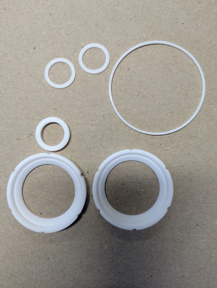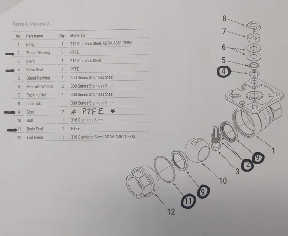 PTFE repair kit for Sharpe 1.5" actuator ready ball valve. For series 1.5-11-6-6-M-TE. NOTE This is PTFE only **. See photos for items included in the kit. Shipping is to contiguous US states only.