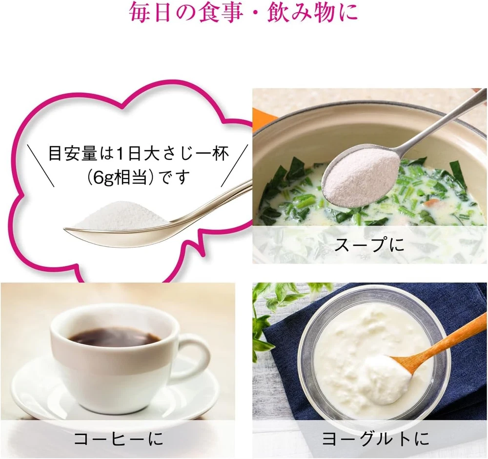 The Collagen Powder Supplement, Health Food, 126g x 5 Description About This Items A great value set of 5 x 126g. For a firmer, firmer skin every day. Contains 5,000mg of low molecular weight fish collagen, patented beauty ingredients derived from super fruits (cranberry + amla fruit), tomato seed extract, cherry blossom extract, hyaluronic acid, vitamin C, and seven other beauty ingredients. Powder type with reduced collagen taste and odor. Add beauty to your daily diet. Dissolve about 6g (just over one tablespoon) once a day in your favorite drink or food, mix well, and consume. Shipping We always send the item with a tracking number. So please place an order without any concern on delivery. You can always track the delivery status. Shipping is only available to the address registered in eBay. If you want us to send another address, please change your address on eBay and then place an order. Shipping is available from Monday to Friday. Weekends are not available because freight (shipping) companies are closed. We do not mark merchandise values below value or mark items as “gifts” – Japan, US and International government regulations prohibit such behavior. About Importer's Obligation Import duties, taxes, and charges are not included in the item price or shipping cost. These charges are the buyer's responsibility. Please check with your country's customs office to determine what these additional costs will be prior to bidding or buying. Thank you for your understanding.