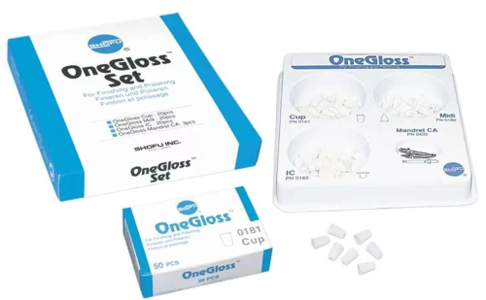 SHOFU Dental OneGlass Set Ca For Finishing & Polishing 63 Pcs Kit MADE IN JAPAN PACKAGING: 20 x Onegloss Cup 20 x Onegloss midi Point 20 x Onegloss Inverted Cone 3 x Onegloss mandrel CA OneGloss is an aluminum oxide one-step finisher and polisher that provides the ideal finish for all types of composite and cemented restorations simply by altering the contact pressure as you go from finishing to polishing. Available in three different shapes and durable enough to withstand polishing an entire arch. Durable and disposable Complete kit with stainless steel CA mandrels (no metal hub) Durable, disposable and individually wrapped Mounted on sturdy plastic mandrels (no metal hub) FEATURES : The degree of smoothness achieved on the restoration surface is determined by simply altering the contact pressure. Pressure of approx 1.0 Newton with intermittent water – for finishing Pressure of approx 0.3 Newton – for polishing OneGloss polishers are made using a high concentration of aluminium oxide with silicone as a binder. Saves time as finishing and polishing can be achieved with a single instrument. IDEALLY USED FOR: Finishing and polishing of all tooth coloured restorations Creating surface texture of direct cosmetic restorations similar to natural teeth Removing surface stain without damaging the enamel Polishing of enamel after scaling Removing excess cement without marring enamel or damaging delicate inlays Removing excess cement after Orthodontic debanding ADVANTAGES: Silicone polishers with aluminium oxide Optimal ratio between speed and contact pressure Finishing and polishing with only one instrument No need to change instruments No polishing paste is necessary Optimal abrasive performance Low vibration performance Images are for Illustration Purpose Only Please Give us Positive Feedback for Our Services . Thankyou for Buying with us . Have a nice day . DISCLAIMER:- The sale of this item may be subject to regulation by the U.S. Food and Drug Administration and state and local regulatory agencies. If so, please not bid on this item unless you are an authorized purchaser. If the item is subject to FDA regulation, I will verify your status as an authorized purchaser of this item before shipping of the item.