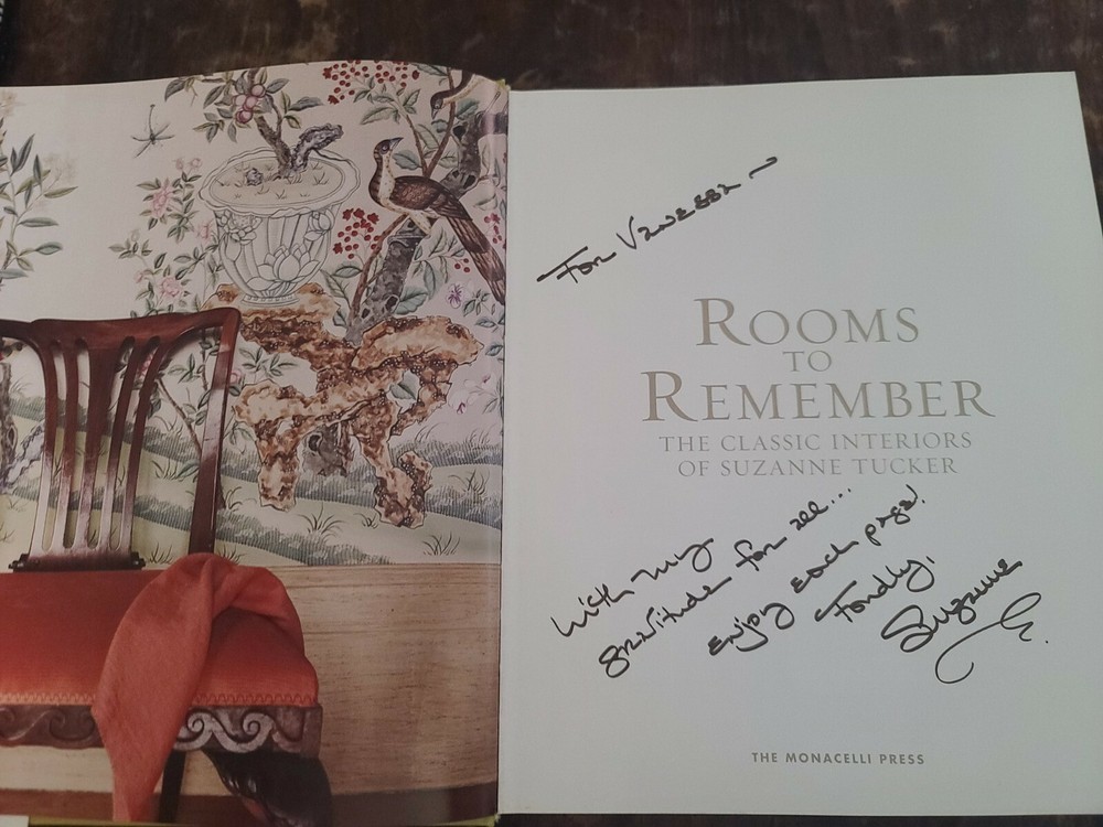 Signed and inscribed. SIGNED Rooms To Remember The Classic Interiors Of Suzanne Tucker 2009 1st Ed.. . All items shipped by USPS Media Mail. Check out our Ebay Store for all our great deals!! Different shipping options available upon request Please view all photos to see condition of items. Feel free to message with any questions!Shipping can be upgraded to USPS Priority. .Please review all pictures as they are part of the item description.