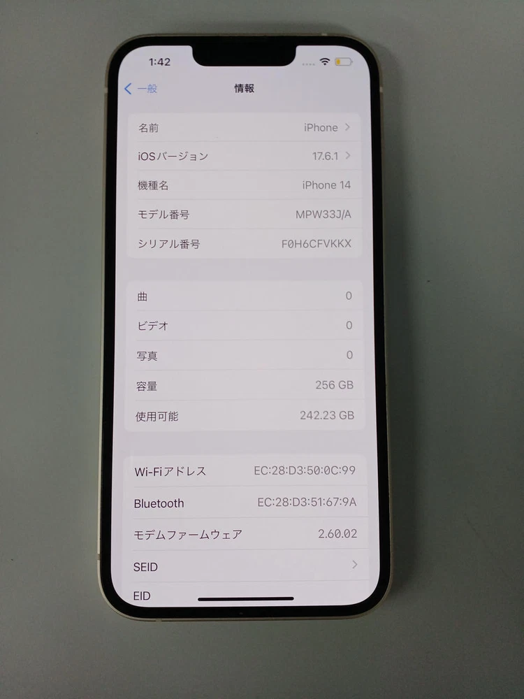 SIM Free IPHONE14 model number MPW33J AAPPLE