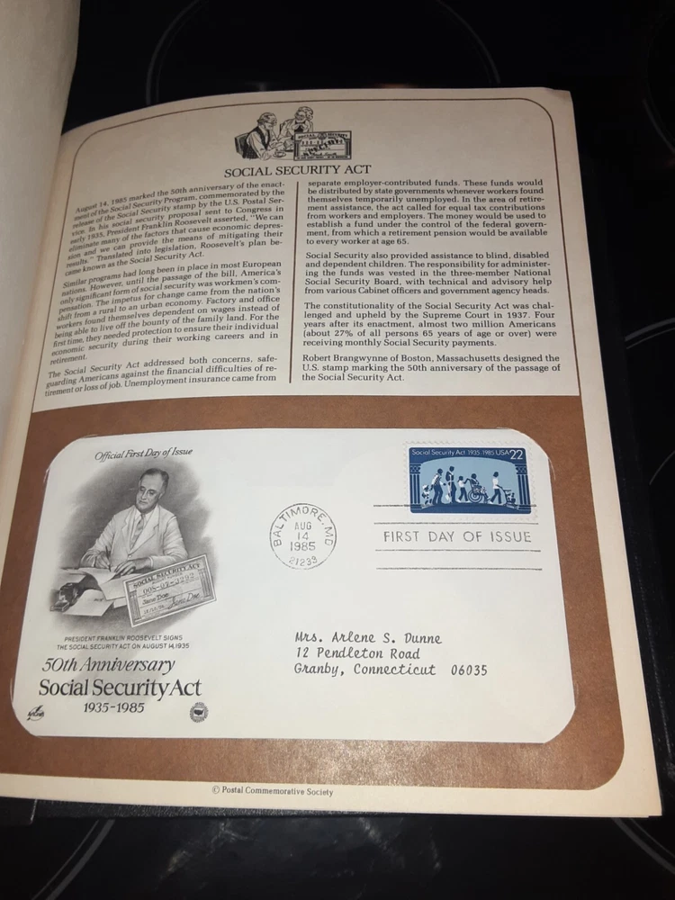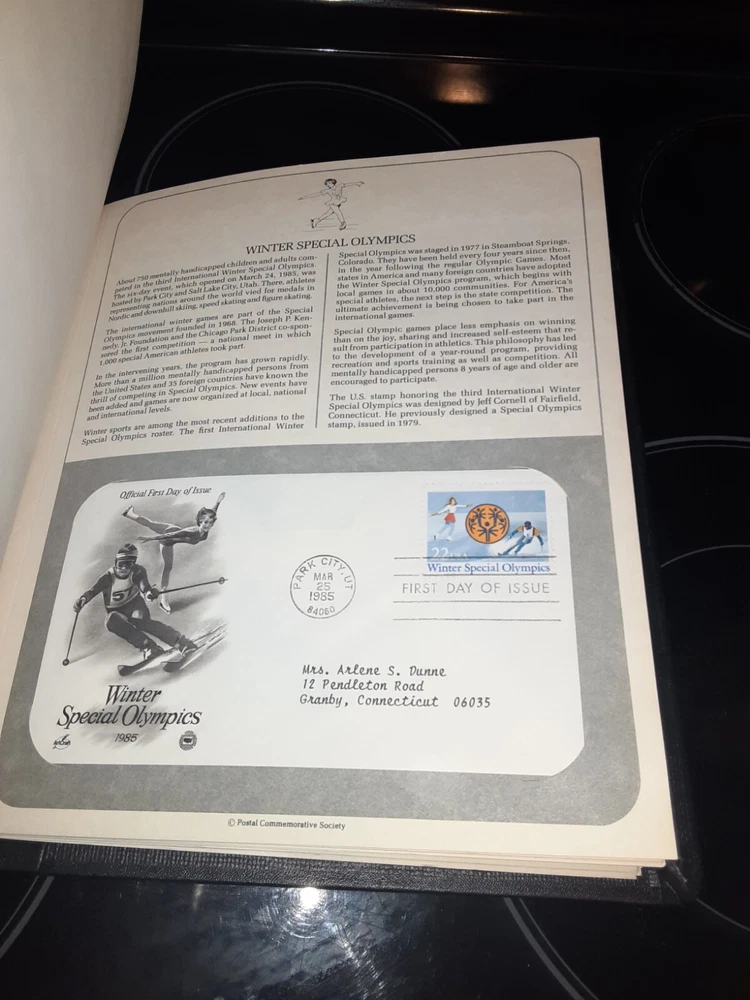 Postal Commemorative Society US First Day Cover Album is in very good condition. Has 66 or 67 covers with information sheet. 1984-1985.