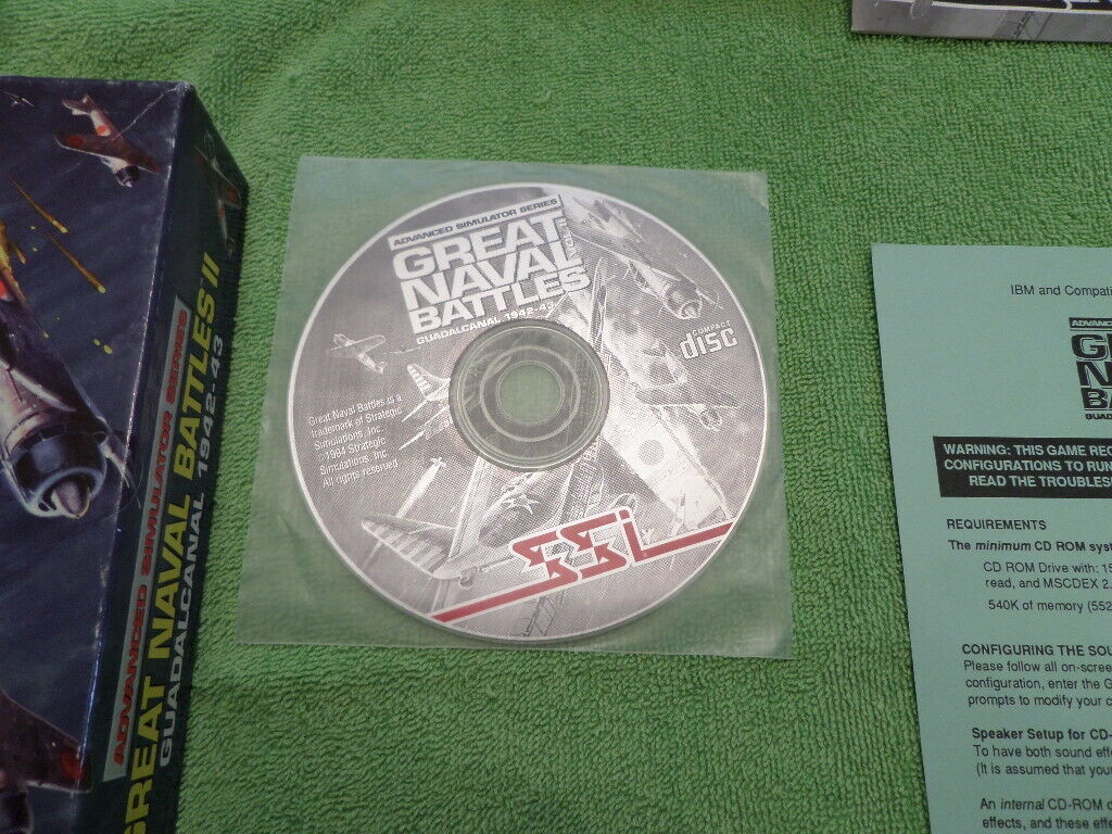 You're looking at a copy of SSI's Great Naval Battles for the PC complete in the box including manual, quick reference guide and old promotional material. The game is on 3X 3 1/2 High Density floppies. Please make sure that your system is compatible, this game has not been tested. GNB 2, 3 and 4 are on CD discs up to Windows 95-98. As always, we are happy to combine shipping on multiple purchases. Visit our ebay store or search for gamelover-1 for more fantastic bargains!
