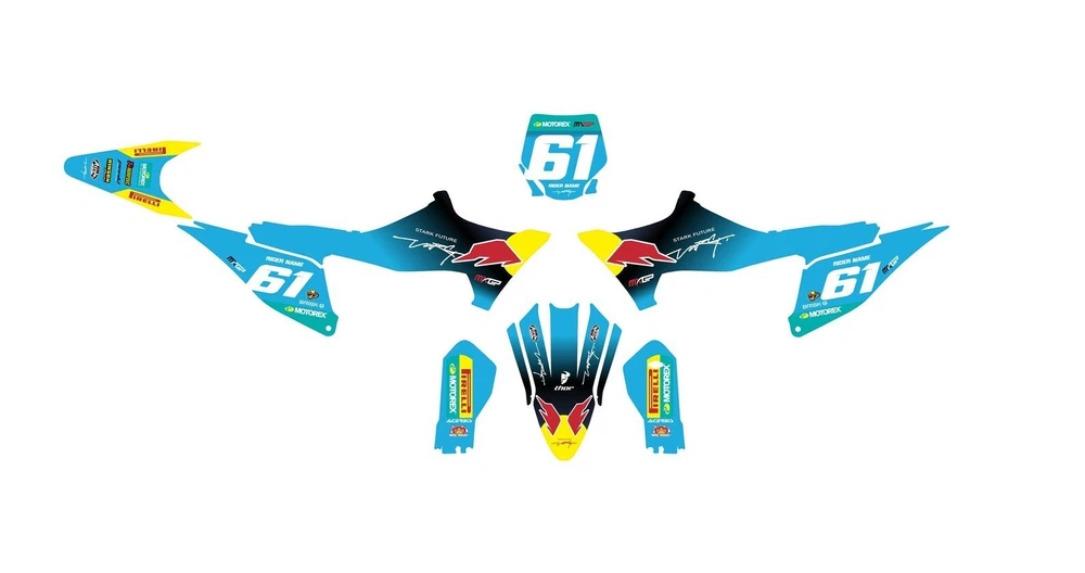WRITE US "GLOSSY" OR "MATTE" SURFACE, IF WE DO NOT GET MESSAGE OR NOTICE ON ORDER - WE WILL SHIP GLOSSY GRAPHICS! STICKER ARE CUSTOM MADE AND WE CAN CHANGE COLORS IN ORDER. - FULL KIT GRAPHICS FOR STARK FUTURE - STARK VARG GRAPHICS MADE FROM 300 MICRONS NEW NANO TECH LAMINATED THICK VINYL BUBBLE FREE ADHESIVE SURFACE ATTENTION! INCLUDES ALL PARTS FROM PICTURES WE DELIVER ALL PARTS FROM PHOTOS REVIEW PARTS IN PHOTOS THAT WILL MATCHES YOUR BIKE PARTS SOMETIMES COLORS FROM PICTURES CAN BE DIFFERENT BECAUSE OF YOUR SCREEN DISPLAY, PLEASE REVIEW PHOTOS FROM SEVERAL DEVICES TO BE SURE THAT COLORS WILL MATCH YOUR WISHES PLEASE USE HELP OF PROFESIONALS TO ATTACH THE APPLIQUE NEED TO BE HEATED BUT NOT TOO MUCH FOR PERFECT ADHESION AND LEAVE IT REST FOR 3 DAYS. INSTALATION MANUAL IS INCLUDED IN THIS ORDER. ORDER WILL BE SHIPPED 2 DAYS AFTER PAYMENT RECEIVE ALL GRAPHICS CUSTOM MADE BY ORDER AND CAN NOT BE RETURNED SHIPPING USUALLY TAKES 3 WEEKS FROM ORDER BUT SOMETIMES DELIVERY CAN BE LATE BECAUSE OF TRANSIT TIME WE ALSO ACCEPT FULLY CUSTOM DESIGNS FOR STARK VARG JUST WRITE US BEFORE ORDER IF YOU HAVE ANY QUESTION DO NOT HESITATE TO WRITE US!