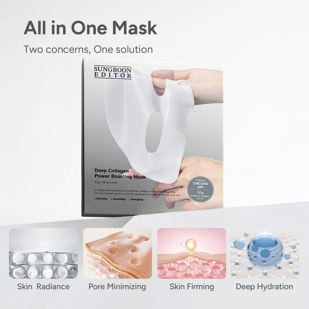 Store New Arrivals Add to Favorite View Feedback Contact SUNGBOON EDITOR Deep Collagen Overnight Mask 37Gx4Ea | Original Hydrating Collagen Face Mask | Real Collagen 2,160,000PPB for Elasticity |Tiktok Trend Items Korean Skin Care Description Item Form Sheet Brand SUNGBOON EDITOR Product Benefits Hydrating, Replenishing, Radiant Skin, Moisturizing, Anti Aging, Wrinkles Treatment Skin Type All Scent Deep Collagen Package Dimensions 7.05 x 6.1 x 0.75 inches; 8.15 ounces Size 4 Count (Pack of 1) [REAL TikTok VIRAL COLLAGEN FACE MASK] Join the beauty trend loved by millions. This mask has gone viral for its powerful results, earning a spot in skincare routines around the world. [HIGH-POTENCY REAL COLLAGEN ] Enriched with 2,160,000ppb of low molecular collagen for deep absorption and nourishment. It helps support skin’s natural elasticity and hydration for a refreshed and youthful look. [OVERNIGHT HYDRATING MASK] Perfect for nighttime use, the collagen hydrogel sheet becomes transparent and fully absorbs into the skin within 3 hours, making it ideal for overnight care. Wake up to skin that feels rejuvenated, firm, and glowing. [COLLAGEN BOOSTING PEPTIDES] With a high collagen content and 9 different peptide ingredients, this formula effectively supports collagen production in the skin. Perfectly blended by our ingredient experts to help improve skin elasticity. [Gentle & Safe for Sensitive Skin] This overnight mask has passed a primary skin irritation test with a 0.00 irritation index score, ensuring it’s gentle enough for sensitive skin. Suitable for all skin types, it provides effective care without causing discomfort. [AUTHENTIC SUNGBOON EDITOR] Leading the K-beauty trend, SUNGBOON EDITOR provides specialized skincare solutions crafted with high-quality ingredients and a definite effect. Product Description ABOUT US We offer the best prices around on high quality products. Our E-store includes media such as books, movies, music and games while offering electronics, toys, sporting apparel, clothing, tools, general home, garden items and more. SHIPPING We are always working hard to ensure your package arrives as soon as possible. Please understand that some factors like weather, high postal traffic, and the performance of shipping companies are outside of our control. We offer free shipping to the lower 48 states and ship within 2 business days of payment, usually sooner. We do not accept P.O. Boxes. Please provide a physical address. RETURNS We offer a 30-Day Return Policy on items which you are not completely satisfied with. You have the option for a full-refund or an exchange of the item. No returns are available on items shipped outside of the USA. PAYMENT We accept PayPal. CONTACT US This page content is yet to come Please ad us to your favorite seller and visit again later Thank You CUSTOMER SATISFACTION We try our very best to make sure every customer is completely satisfied. If there's a problem, message us! We're happy to help.