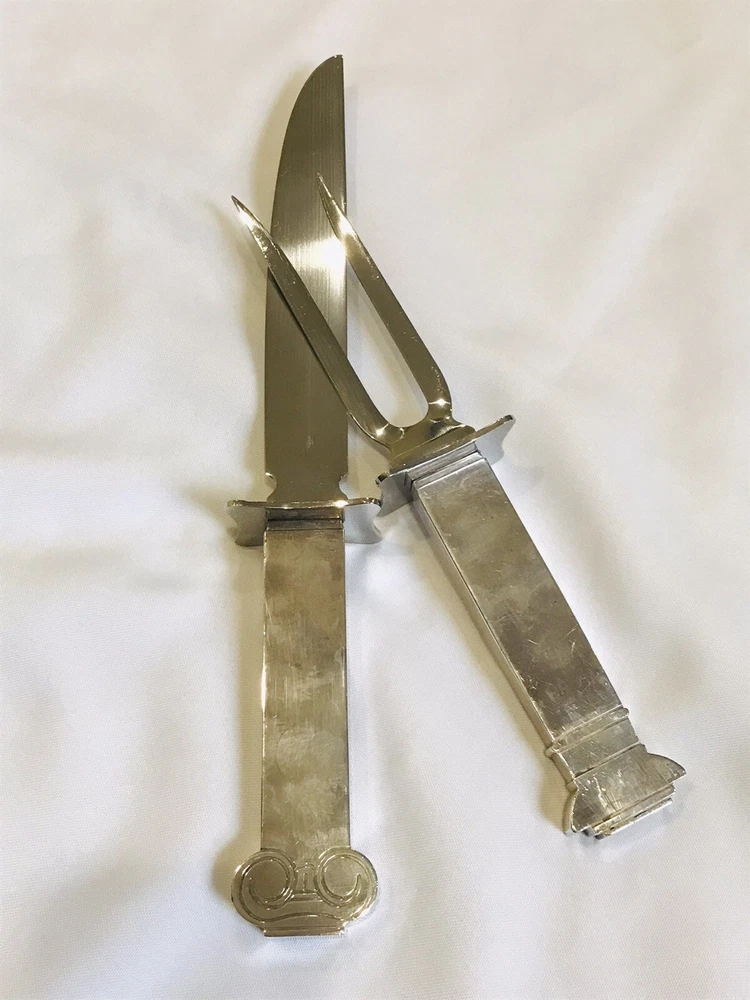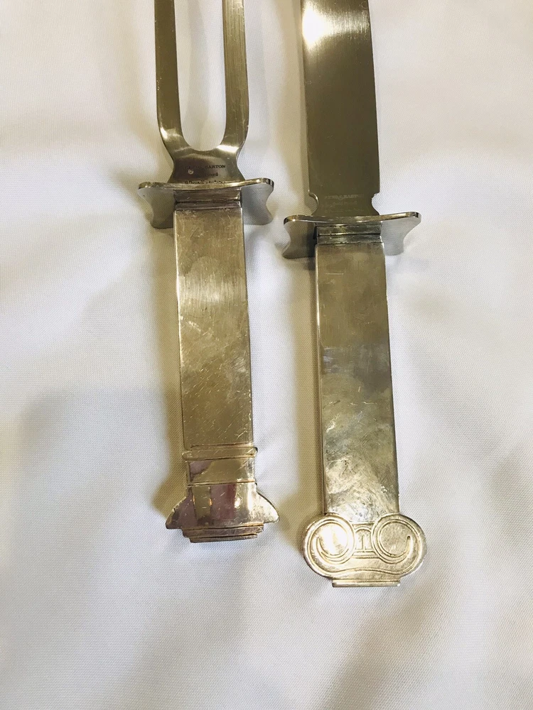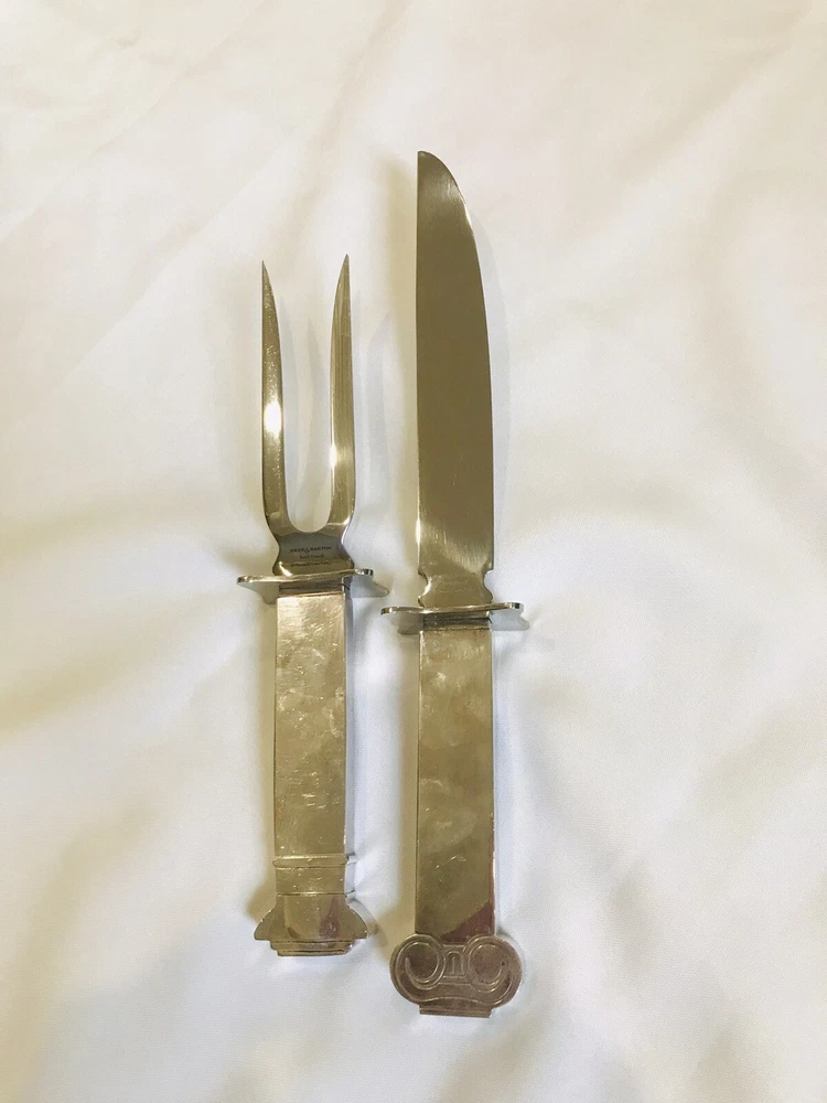 SWID POWELL Venturi Reed & Barton 2 Pc Silverplate Carving Set Postmodern Era Thanks for looking.. Please review photos closely. Message me with any questions you have.
