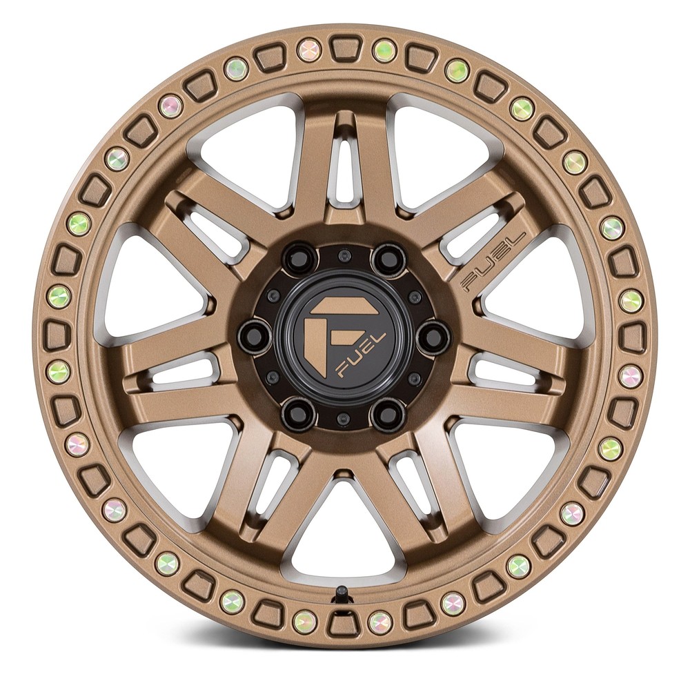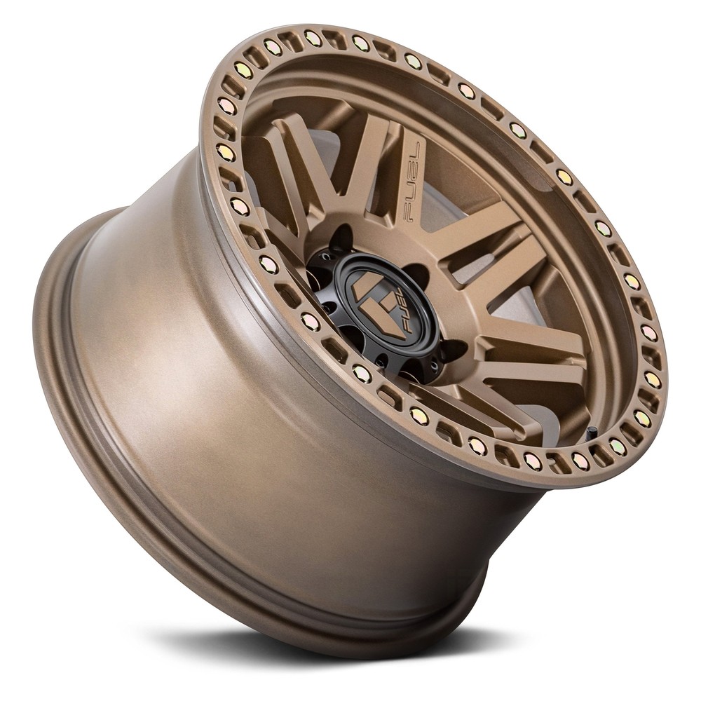 CARiD Accessories CARiD Wheels & Tires CARiD Auto Parts Semi Truck Motorcycle Powersports RV / Camper Boating Recreation Tools WHEELS & TIRES Interior Exterior Lighting Audio Wheels Tires Performance Repair Body Automotive Tools Fuel D811 SYNDICATE Wheel 17x9 (1, 6x139.7, 106.1) Bronze Single Rim Part Number: D81117908450 ● In Stock: Ships in 3 days Authorized Dealer: Lowest Prices. On the go Daily Deals Guaranteed Fitment. Always the correct part In-House Experts. We know our products Our Newsletter: Product Details Product Details D811 SYNDICATE Matte Bronze Wheels by FUEL®. 17" x 9", +1 Offset, 6x139.7 Bolt Pattern, 106.1mm Hub. These astonishing monoblock wheels would fit someone who is looking for strength, performance, and style. Made from just one piece of metal using leading-edge equipment, these wheels guarantee maximum durability. They feature an exceptionally stiff construction and technical perfection. Plus, the wheels are designed to deliver remarkable operation both on the streets and trails. D811 SYNDICATE Matte Bronze Wheels by FUEL®. 17" x 9", +1 Offset, 6x139.7 Bolt Pattern, 106.1mm Hub. These astonishing monoblock wheels would fit someone who is looking for strength, performance, and style. Made from just one piece of metal using leading-edge equipment, these wheels guarantee maximum durability. They feature an exceptionally stiff construction and technical perfection. Plus, the wheels are designed to deliver remarkable operation both on the streets and trails. Notes: Once Tires are mounted onto Wheels, the wheels become Non-Returnable Lip Size, Concavity and overall Appearance, may vary depending on Vehicle and Wheel Size Specifications: Brand: FUEL Product Model: D811 SYNDICATE Size: 17"x9" Color: Matte Bronze Part Number: D [phone hidden] Rim Diameter: 17" Rim Width: 9" Bolt Pattern: 6x139.7 Offset: 1 Hubbore: 106.1 Lug: 6 PCD: 139.7 Beadlock: No Off Road use only: No Custom Finish option: No Designed for Dually Truck: No Load Rating: 2500 lbs Frontspacing: 4.96 Backspacing: 5.04 Bolt Pattern (inches): 6x5.5" Weight: 33 lbs Finish: Matte Manufacturing: Cast Construction: 1PC / Monoblock Material: Aluminum Spoke Style: V-spoke Lugs type: Exposed Lugs Features: Rigid construction, high-end look, and exquisite style Fabricated from solid materials resistant to impacts Provide epic performance with zero compromise Operate exceptionally well both on trails and highways These tires are a good combo if you love doing street and trail riding. Built trail-tough yet also engineered for daily driving duties, the Fuel Off-Road 1-piece line is a true "no excuses" upgrade. The tires are machined from one integral piece to provide uncompromising strength and guarantee absolute value. What are you waiting for? You really can’t go wrong with the exciting range of Fuel Off-Road 1-piece wheels. Good looks, competitive prices, and a vast range of styles and applications. Choose the ones to your preference and elevate your driving experience. Regardless of what styles or sizes you're interested in, the one thing you can depend on to come with every wheels or wheels and tires order is the best buying experience in the business. From fitment help from our in-house wheel experts to shipping packages certified by UPS, we'll take care of you and your order every step of the way. We know how much of a financial investment you're making in a set of wheels or wheels and tires, and in return we'll deliver service and product that is second to none. We take pride in our fitment information and don't take our fitment guarantee lightly. You can depend on the fitment advice from our professionals because they have decades of knowledge and experience to draw from. Research the brands of equipment we use and the wheel accessories we offer and you'll find they're the finest in the industry, because we want you to have the best. The combination of products and services we provide cannot be matched, especially by a local tire store. Product Video About Us About Us No matter whether you're doing basic repairs and maintenance, modifying your car's street appeal and performance, or adding high-tech lighting and electronics, our great selection of brand name products and knowledgeable associates will ensure success with all your automotive projects. Our Mission We offer the finest and widest variety of automotive parts and accessories using state-of-the-art technologies, and employ the most dedicated and creative team members. These individuals focus on exceeding expectations of customers who want the exact component at the best price in the quickest time. Our goal is to provide a WOW experience during every customer interaction. Whatever you need, whether it's a replacement part to fix a broken down vehicle, a crash part to repair a vehicle from an accident, perhaps a new set of custom wheels and tires, or something to make it flashy or faster, lifted or lowered, we will be your one-stop shop. We fulfill our mission daily with enthusiasm and optimism, learning from our ongoing opportunities and successes. We enjoy a modern yet tricked out work atmosphere while ensuring a true learning environment to develop our people. All manufacturer names, symbols, and descriptions, used in our images and text are used solely for identification purposes only. It is neither inferred nor implied that any item sold by CARiD is a product authorized by or in any way connected with any vehicle manufacturers displayed on this page. Copyright © 2003-2025 CARiD. All rights reserved.