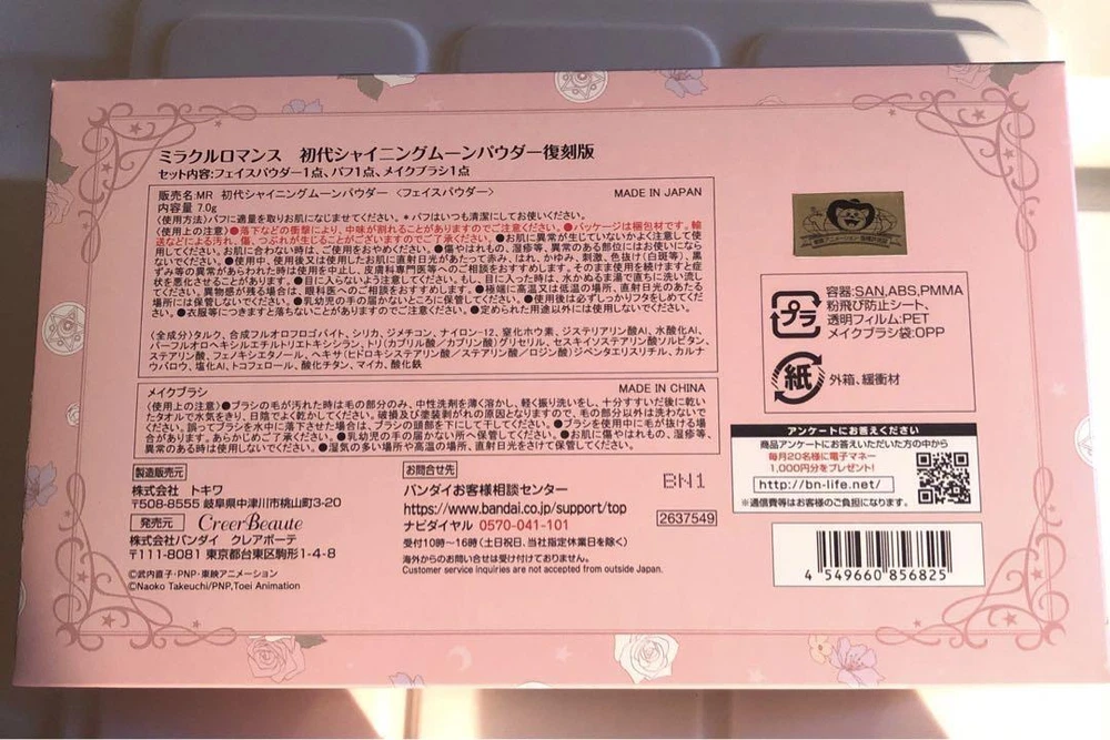 Sailor Moon Miracle Romance 4Piece Makeup Set Compact Cheek Powder Foundation Key Features **Product Description:** - **Brand Name:** Bandai - **Product Type:** Sailor Moon Cosmetics Set - **Model/Product Name:** Miracle Romance 4-Piece Set **Detailed Features:** - **Includes:** - Crisis Moon Compact Eyeshadow (Flat Style) - Miracle Romance MR Cream Cheek A (Chibiusa) - Shining Moon Powder (Reissue) - MR Cushion Compact (Pink Ochre Foundation) - **Usage:** All-season use - **SPF:** SPF35/PA - **Condition:** Item has been stored for many years; cosmetic quality is unknown. Recommended for display or collection purposes. **Item Specifics:** - [Brand]: Bandai - [Character Name]: Usagi Tsukino/Sailor Moon - [Character Name]: Chibiusa/Sailor Chibi Moon - [Type]: Anime - [Set Includes]: Eyeshadow, Foundation, Cream Cheek, Powder Specifications Brand No Brand Country Japan Product Description This item is in very good condition, unused, almost unused, or without any noticeable stains or scratches. We will ship the product in the photo. If you have any other questions, please feel free to contact us via message. Shipping We ship all items with tracking numbers. We decide the delivery company depending on the area you live in. If you wish to use a freight car, please make sure to contact us in advance. Depending on your area, delivery fee to the remote area may be charged separately. In that case, additional charges may apply. If you are concerned, please let me know the area before purchasing. Depending on your area, you may be charged by your local shipping company. There is also a problem with the local shipping company, so I recommend you to check beforehand. International Buyers - Please Note: Import duties, taxes, and charges are not included in the item price or shipping cost. These charges are the buyer's responsibility. Please check with your country's customs office to determine what these additional costs will be prior to bidding or buying. Please Note: Consoles and game consoles are products for Japan. All displays are in Japanese. Only Japanese software may be available. Please check if it is available in your country before purchasing. Electrical Appliances: AC 100 For 100 V electrical appliances used in Japan, a transformer may be required for use in your country. Please confirm before purchase or feel free to contact us if you have any questions. About returns Points to note when returning items. ●Unopened. ●unused. The inquiry must be made within the due date. If you have any questions, please feel free to ask. We will always respond politely and sincerely.