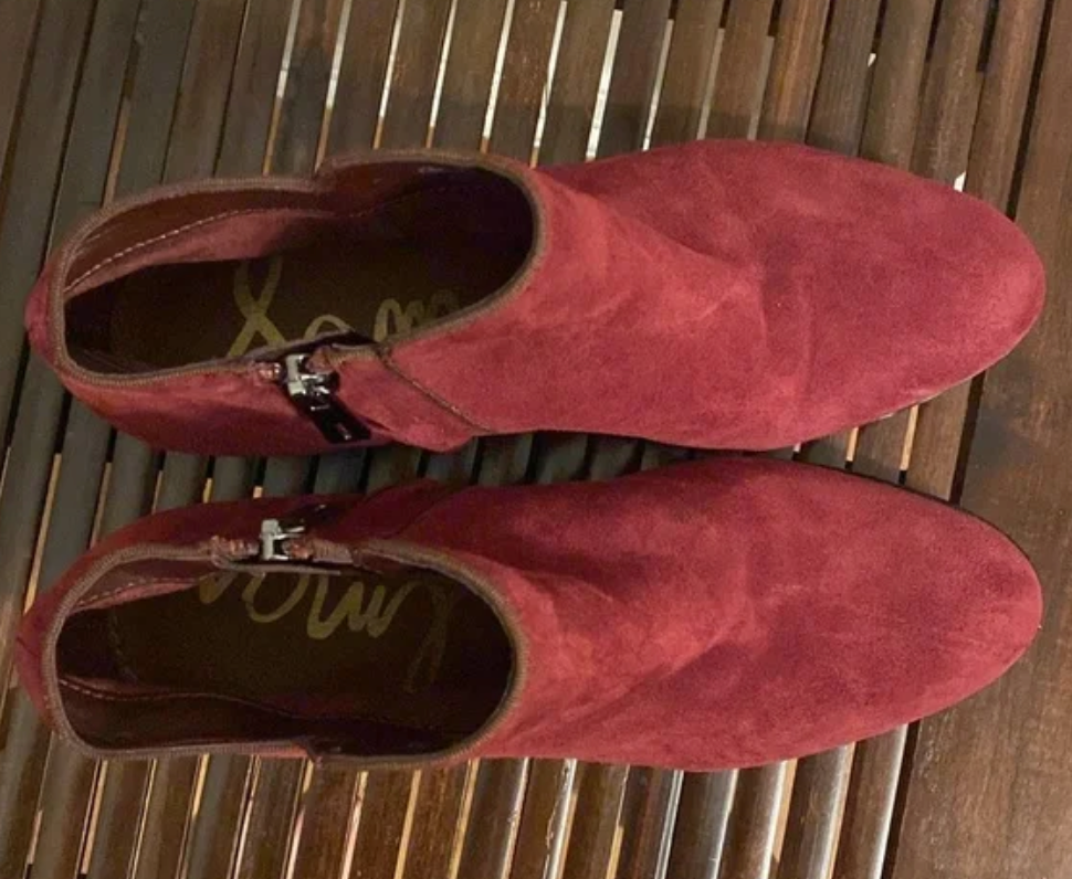 Sam Edelman Burgundy Suede Petty Booties Heel height 1 1/2” In good used condition