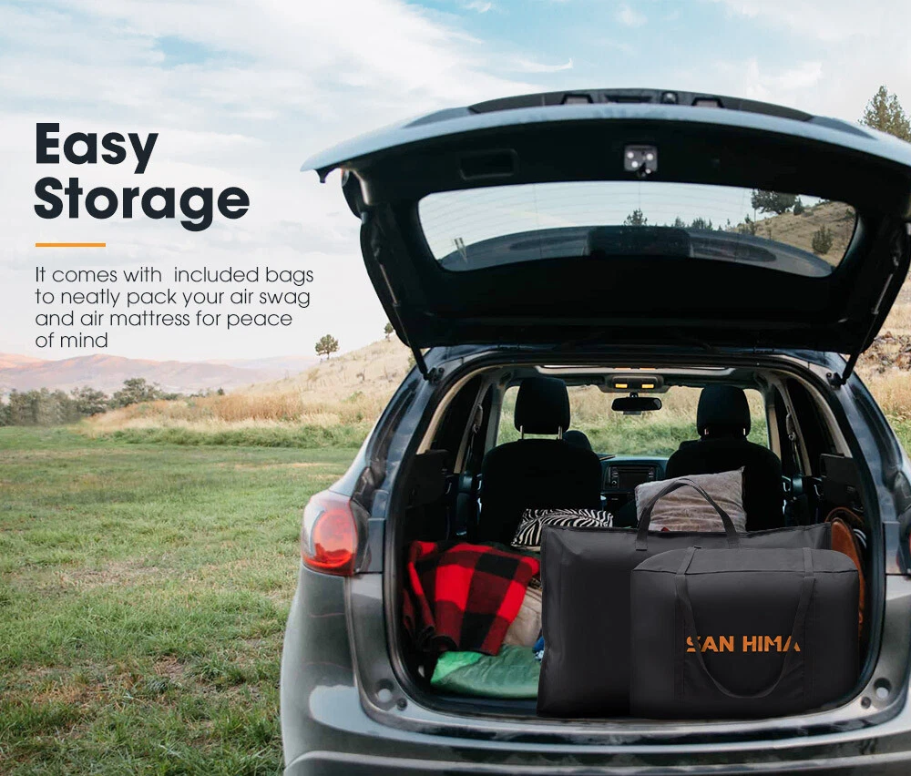 Discover the future of swag with the air pole swag by San Hima. Say goodbye to cumbersome pole assemblies and embrace the ease and speed of setup with our innovative air poles. Experience unparalleled comfort, durability, and a hassle-free camping adventure with our single swag. With our air swag, instant setup is a reality. Just connect the hurricane pump to the inflation point, and you're ready to go. Crafted from 245gsm PU-coated polyester-cotton and 600gsm PVC floor, our swag ensures strength and reliability. Plus. It's impressively larger in size compared to aluminum poles swags while being lighter at just 19.75 lbs. Stay shielded from the elements with its UPF 50+ UV protection and a 3,000mm waterproof rating, complete with rain covers and waterproof tape sealing to keep you dry in Free Shipping Most Items Visit Our Store menu mobile Automotive & 4x4 Truck & Trailer Parts Sports & Outdoors Home & Garden Help Key Features Easy Setup & Storage: Effortlessly set up and deflate our swag with included hurricane air pump using a single inflation point and the air valve, and neatly store it using included bags. Roomy yet Lightweight: Impressively larger in size to aluminum poles swag while lighter at 19.75 lbs for easy storage, and equipped with 4 inner storage pockets for your essentials. Deluxe Air Mattress: Inflated effortlessly with the included electric air pump, our mattress offers effortless storage, easily rolled up with your air swag. and extra comfort at 6.69 in thick. Exceptional Durability: Our swag, crafted from 245gsm PU-coated polyester-cotton, provides 3,000mm waterproofing, UPF 50+ UV protection, and comfort in any weather. Enhanced Waterproofing: Rain covers fitted over the air poles and waterproof tape sealing every seam of the swag provide extra protection, ensuring it stays dry during intense rain. Indestructible Air Poles: Made from TPU and covered with 420D Oxford fabric, our puncture-resistant air poles are virtually indestructible. Rugged PVC Floor: The 600gsm PVC floor of our single swag is waterproof and built to withstand harsh use. Ventilated & Bug-Free: Enjoy refreshing and bug-free environment with 2 full-length doors and 2 zip-down windows featuring 125gsm mesh. Two-way doors ensure easy access. Extendable Awning: Adapt to unpredictable weather with ease by rolling away or extending 2 large storm covers with poles for fully protected space in unfavorable conditions. Shoe Changing Area: Conveniently change your shoes in a dedicated area before entering the interior of our San Hima swag, ensuring cleanliness and comfort. Warranty 2 Years Warranty What's In Box 1 x San Hima Air Swag Single 2 Sets of Poles 8 x Pegs 4 x Guy Ropes 1 x Hurricane Pump 1 x Electric Pump 2 x Storage Bags 2 x Carry Bags 1 x Air Mattress (Includes a Mattress Repair Kit and a Valve Cap) 1 x User Manual Specifications Sleeping Capacity: 1 Person External Dimensions: 86.61L x 43.31W x 39.37H in Internal Dimensions: 82.68L x 39.37W x 35.43H in Mat Dimensions: 77.95L x 37.40W x 6.69H in Swag Material: 245gsm PU-coated polyester-cotton Mesh: 125gsm Insect Mesh Floor Material: 600gsm PVC Air Pole Material: TPU Covered With 420D Oxford Fabric Waterproof Rating: 3,000mm UV Rating: UPF 50+ Package Size: 23.82 in x 21.06 in x 12.60 in Package Weight: 37.04 lbs Delivery Returns Payment About Contact Delivery Please note that deliver to PO BOX address is not available for bulky items. Please make sure you have provided a correct physical address during checkout on products of excessive size. To aim in smooth and speed of delivery, ensure your address is correct during the checkout. Changes to address after payment made may not be considered. Please refer to Returns for more information Please allow 5 to 9 business days for product to arrive. We highly recommend to provide an answerable contact number and email address as we do make calls and send emails to follow up item delivery status. Returns We accept returns. Please contact our customer service immediately if you have changed your mind and wish to cancel the order. Simply contact us within 30 days to be guided through getting a refund. This change of mind return policy does not affect your rights in respect of faulty items. (Please refer to the product’s warranty terms). In case of change of mind, returned items must be in resalable condition and returned in their original packaging with all accessories. Please note that we may not be able to cancel an order if it is already in transit until it arrives. You will need to send the product back on your own cost and applicable freight charge and 10% restocking fee will be deducted from your refund to reimburse the initial postage and handling cost. Please do not return the product prior to getting instruction from our customer service to avoid the risk that your returned item is not identifiable. Payment SAN HIMA offers varies payment options. We accept Visa & MasterCard PayPal Security We do not store your credit card details anywhere on our system. We use third parties gateway such as PayPal with PCI DSS Compliant (Payment Card Industry Date Security Standard) for security payment. We have networking security software such as VPNs and firewall About Welcome to SAN HIMA online store. Headquartered in Australia, San Hima proudly offers an extensive range of overland solutions. Our diverse offerings include cargo systems, towing solutions, caravan and trailer parts as well as car camping equipment. Designed to accompany you on your journeys and enhance your performance when conquering the peaks, our products are crafted for those with a passion for exploration. Contact If you have any queries regarding shopping with San Hima , please contact us Categories 4x4 & Ourtdoors Truck & Trailer Parts Home & Garden Sports & Outdoors Other Customer Service About Us Contact Us © Copyright 2021-2024 VICOFFROAD INC.(EIN 87-2480979) All Rights Reserved.