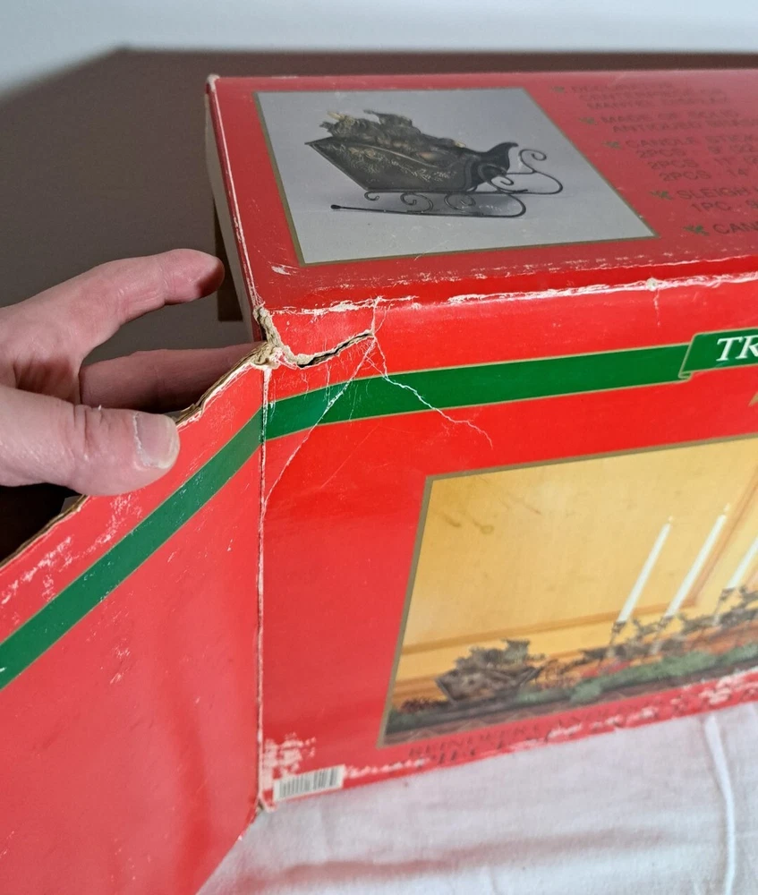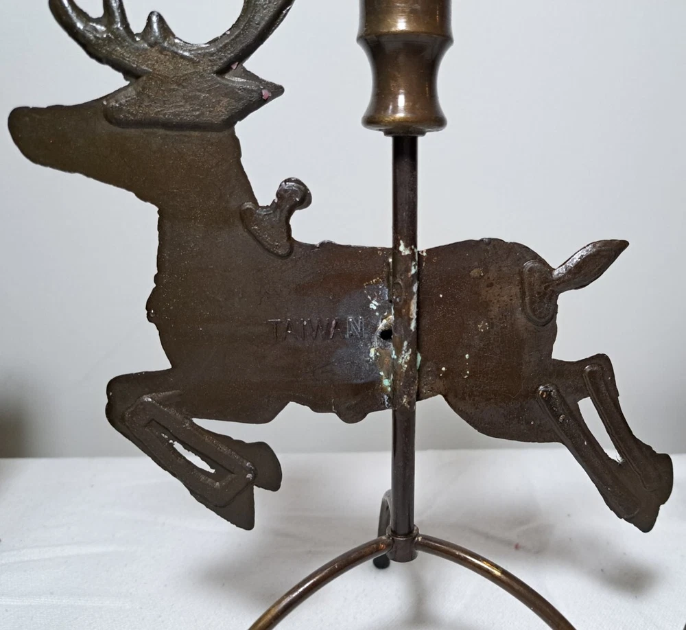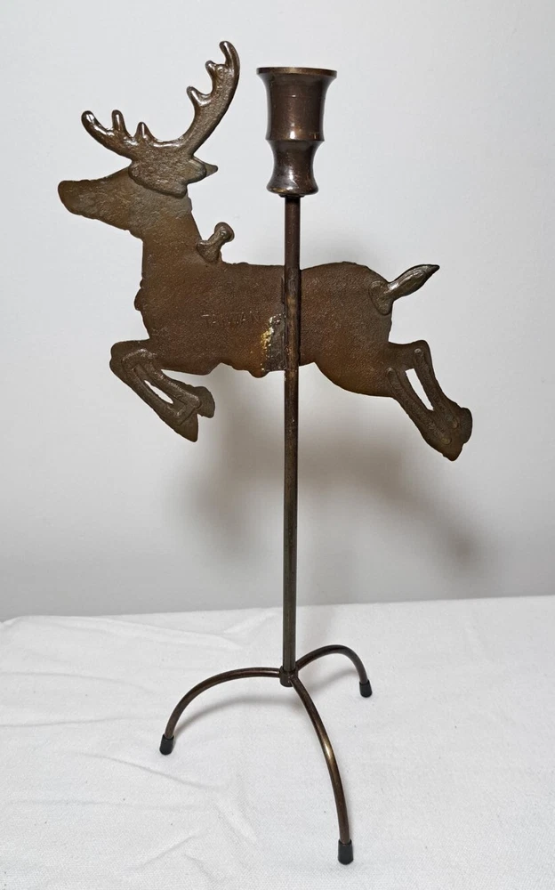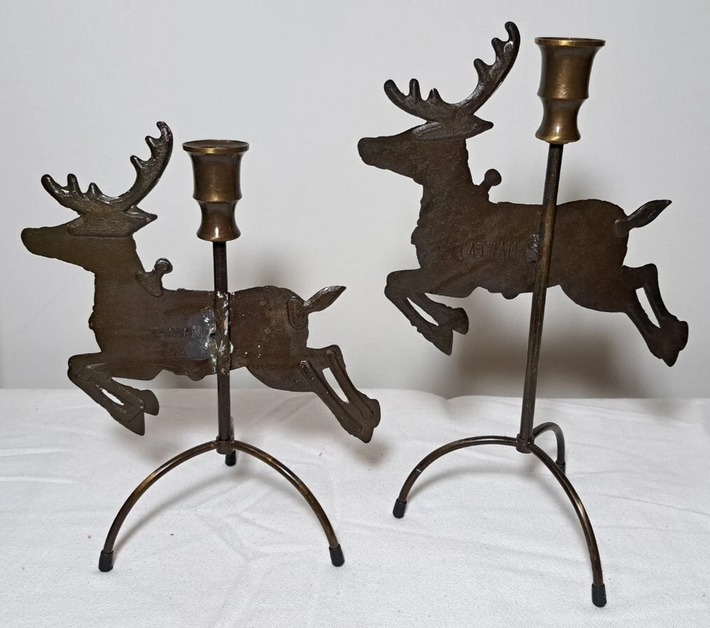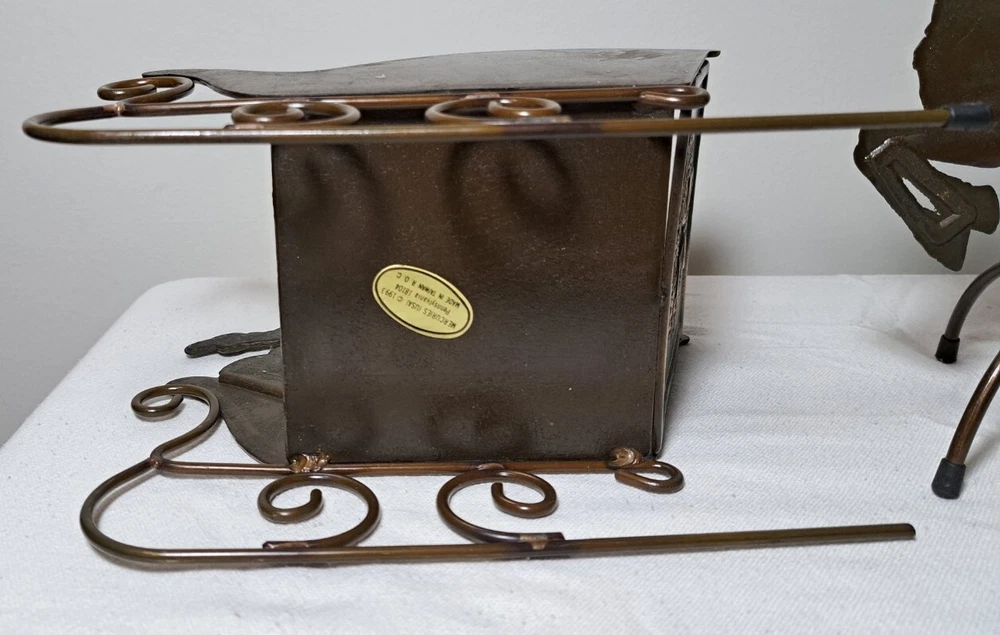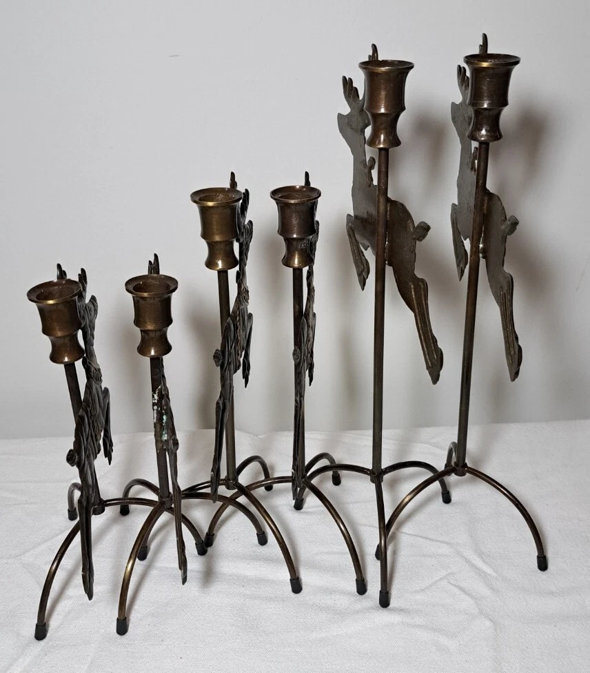 Vintage Mantel Display Christmas Solid Antiqued Brass Santa Sleigh Reindeer Candlesticks Solid Antiqued Brass It can span the length of a mantel top or shorter area it all depends on how you space the pieces out. It is gorgeous on a mantel, tabletop, etc See photos for measurements This is a large display when set up The sleigh can hold a Christmas floral decor or whatever you like It's Solid Antiqued Brass so the box is rather heavy Candles not included I consider this to be in good preowned condition One reindeer has some discoloration in the weld area on the back see last photo In the original box- the box has wear and tape on it Some small candle wax drippings are possible Shipping cost is a little higher as this is a larger box and quite heavy. Please view all photos zooming in on them as they are part of the description for you to judge condition.