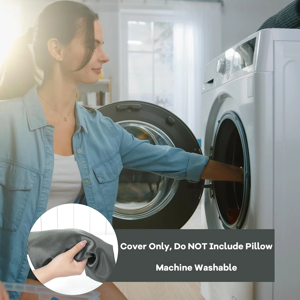【Product Size】 : 25x25x12.5 inches pillowcase fits 24x24x12 inches wedge pillow. 25x25x10.5 inches pillowcase fits 24x24x10 inches wedge pillow. 25x25x8 inches pillowcase fits 24x24x7.5 inches wedge pillow. (Package do not include pillow, cover only). Fabric--Satin. 【Silky & Smooth】High quality satin fabric, this wedge pillow cover is extremely lustrous and smooth. Designed to be gentle and soothing to the skin, it is good for the hair and skin, leaving you with a luxurious feeling. Relax and feel unrivalled comfort. 【Breathable & Soft】Say goodbye to restless nights because of the heat, the comfortable satin fabric wedge pillowcase stays breathable and soft. Let you wake up refreshed and ready to take on the day, so you can sleep comfortable and breathable without stifling sweat on even the hottest summer days. 【Perfect Fit】Designed for wedge pillows, long zip design makes the pillowcase easy to install and protects your wedge pillow prolonging the life of your pillow. 【Machine Washable】Removable & machine washable. Our wedge pillowcases take the hassle out of hand washing, just unzip and throw them in the washing machine for a new look. Great quality, very durable and won't break down with multiple washes. Product Description The video showcases the product in use. The video guides you through product setup. The video compares multiple products. The video shows the product being unpacked.