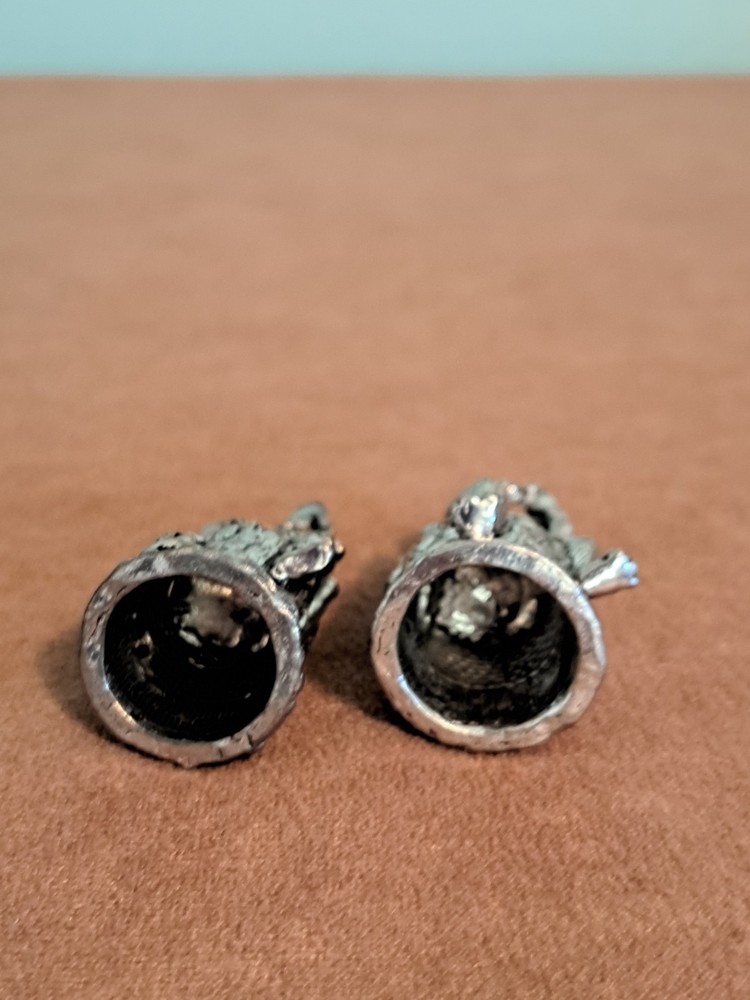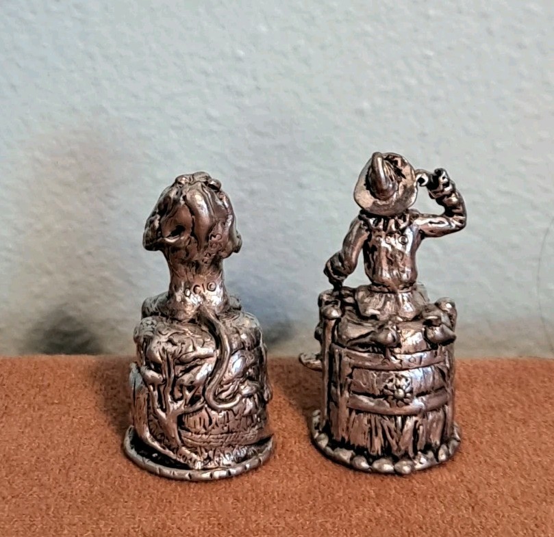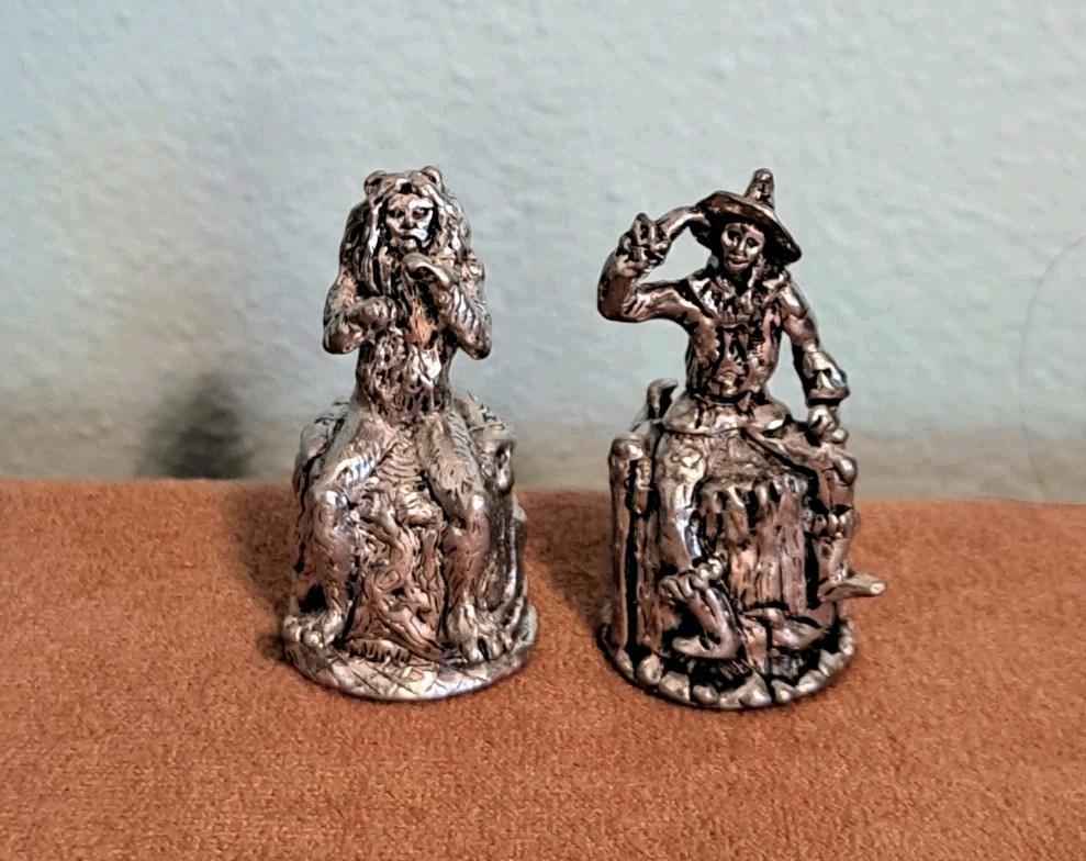 Scarecrow & Cowardly Lion Collectible Thimbles Wizard Of Oz Pewter. 1.75 inches each Sitting in ornate tree stumps.