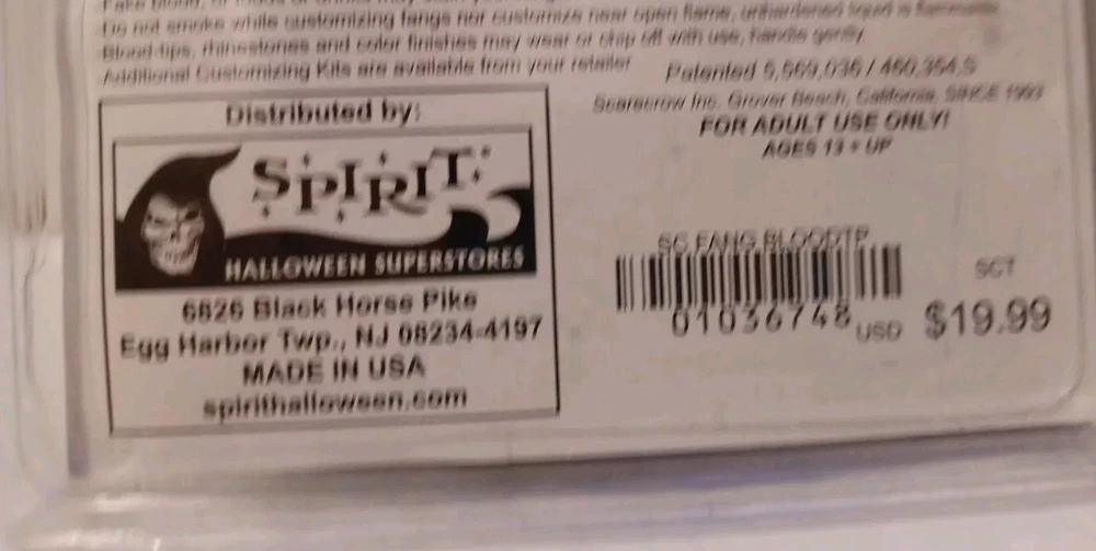 Scarecrow Sexy Deluxe Vampire Fangs Halloween Costume Accessory Vtg