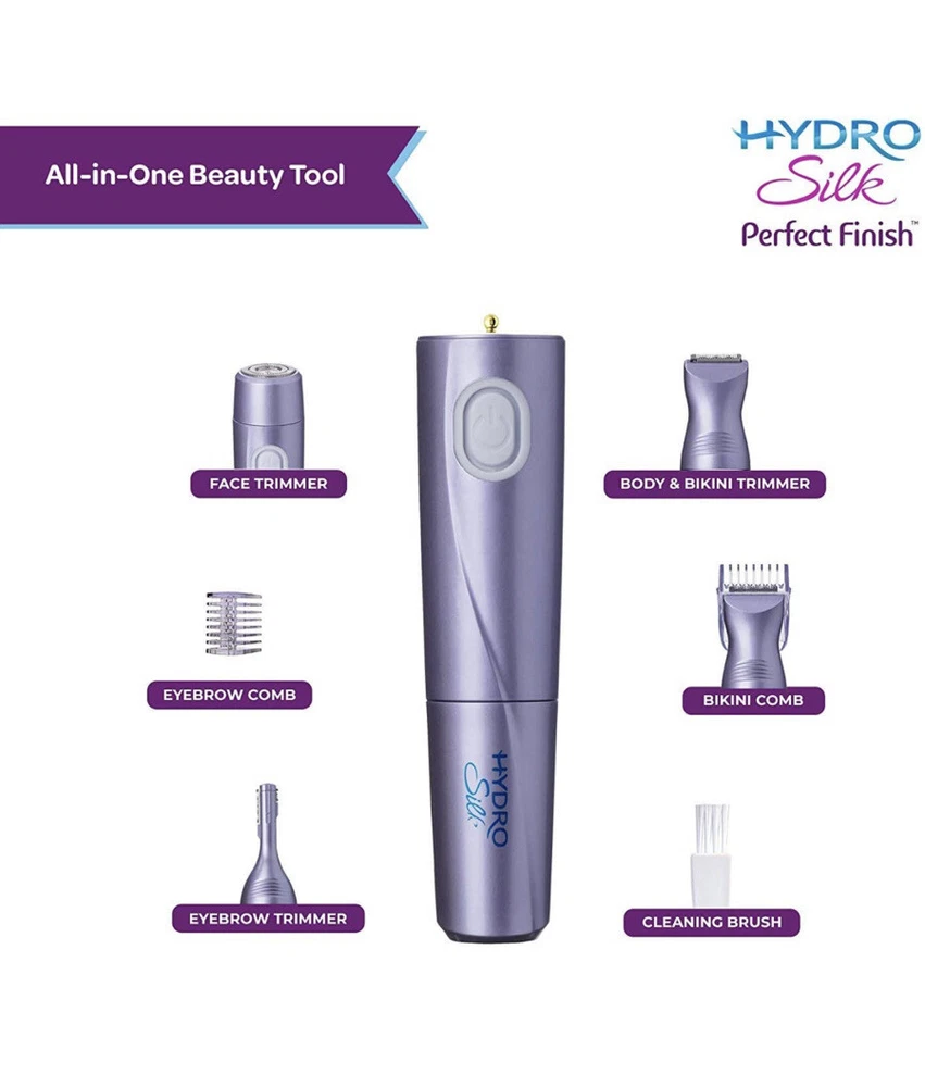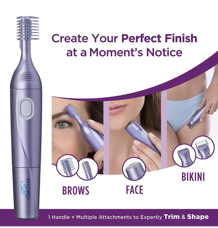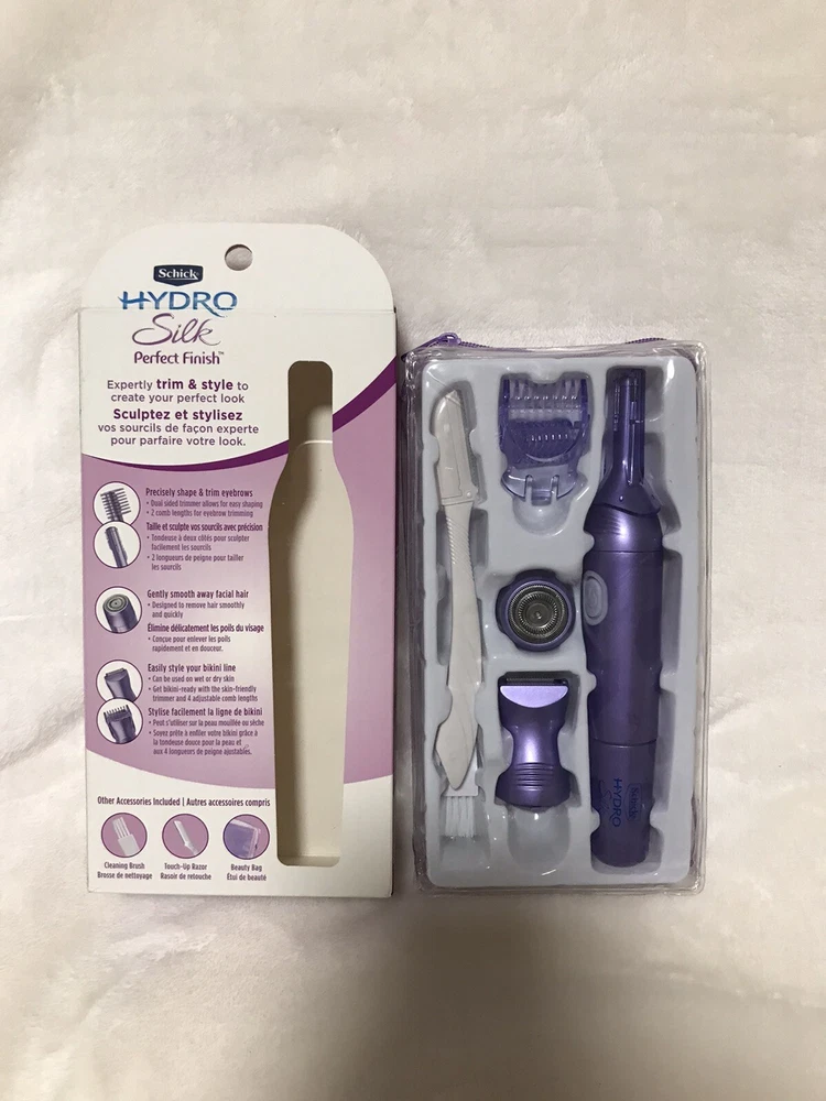 Schick Hydro Silk Perfect Finish Trimmer with 8 Accessories+AA Battery. It’s brand new, open box took pictures. Item: D05