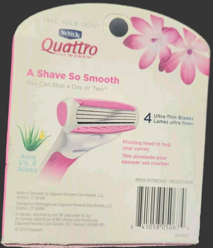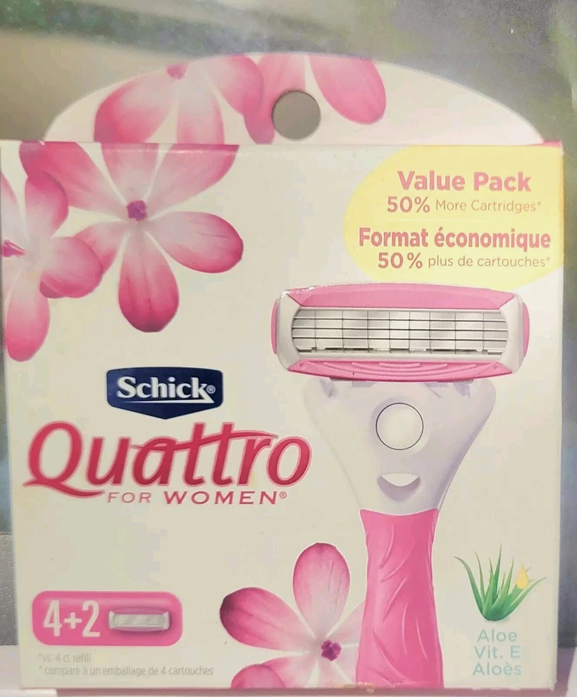 Schick Razor Blade Refill - 6 Pack. High-Performance Razor system with an easy-to-grip, stylish rubber handle. 4 ultra-thin blades give you a smooth, long-lasting shave so you can skip a day or two. Conditioning Strips formulated with Aloe and Vitamin E help to reduce irritation and provide a smooth, comfortable shave. Pivoting Head expertly designed to hug curves and contours.