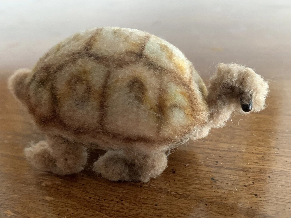Cute little vintage turtle Noah's Ark by Schuco Germany Mohair with bendable chenille legs & head 7 cm or 3 inches no ID 1950s 1960s Black eyes Very good overall vintage condition as shown with minimal age wear