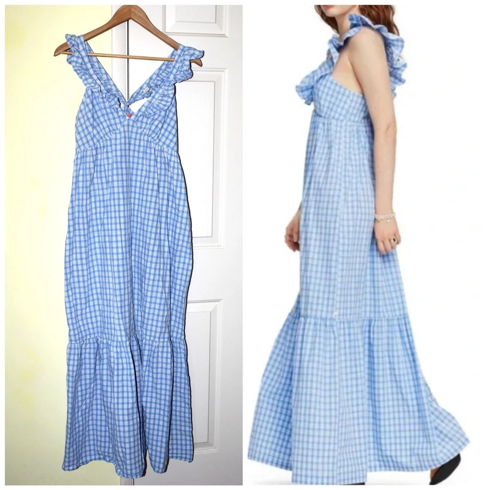 Excellent pre owned condition, no flaws. Please see photos for measurements Size: Large • Hidden side-zip closure on the side • V-neck • Partially lined • 100% cotton • Machine wash, tumble dry • Imported
