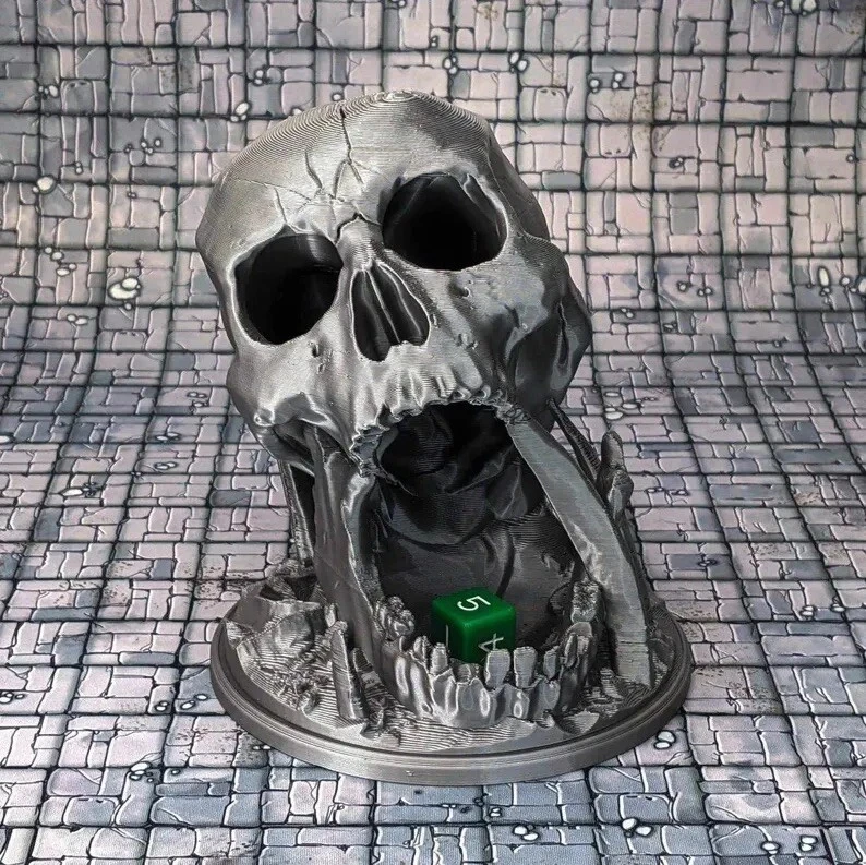 Included: Screaming Skull Dice Tower Why Goblin Clan Games We have over 6 years experience on various online platforms. We've handled thousands of orders and strive to make your shopping experience with us the best you've ever had. We're D&D gamers ourself and understand the needs and desires of our community we provide for. Our products are great for Dungeons and Dragons (DnD), Warhammer 40k, Pathfinder, Gaslands, and many other wargames and other tabletop games. What to expect This product by default will come in Gray PLA. Other colors may be available upon request. Sizing and Scale 3D Printed at full scale and fits most standard Dice Sets intended for D&D. Shipping and Handling All orders over $35 get FREE SHIPPING at checkout. Please see shipping section for current handling times. Other Important Information All DnD miniatures come with bases . Some resin minis may arrive disassembled. This helps protect the mini during shipping. Not for Children under the age of 13 years. Original files of this model can be purchased from Ars Moriendi 3D. I am an officially licensed printer.