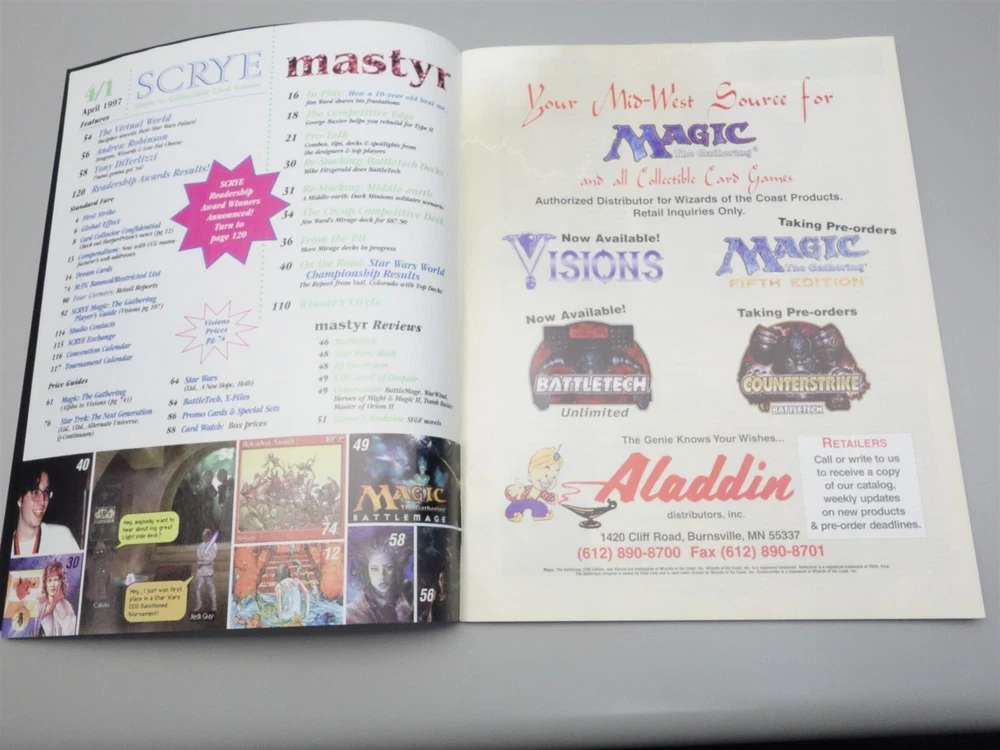 Check out our store for other great deals on a variety of games, books, and hobby supplies! This auction is for the Scrye Issue 4/1 in the condition as pictured. Combined Shipping: Combined shipping charges for this item are $2 within the US. For the full discount on shipping and handling please wait for an invoice that contains all items purchased. We have to send invoices by hand, as eBay does not correctly calculate combined shipping charges. We mail all items within one business day after payment is received, and all items are insured. Please contact us immediately if there is any damage incurred during shipment. International Buyers – Please Note: Import duties, taxes, and charges are not included in the item price or shipping cost. These charges are the buyer's responsibility. Please check with your country's customs office to determine what these additional costs will be prior to bidding or buying.