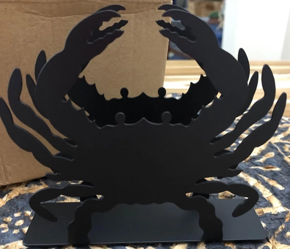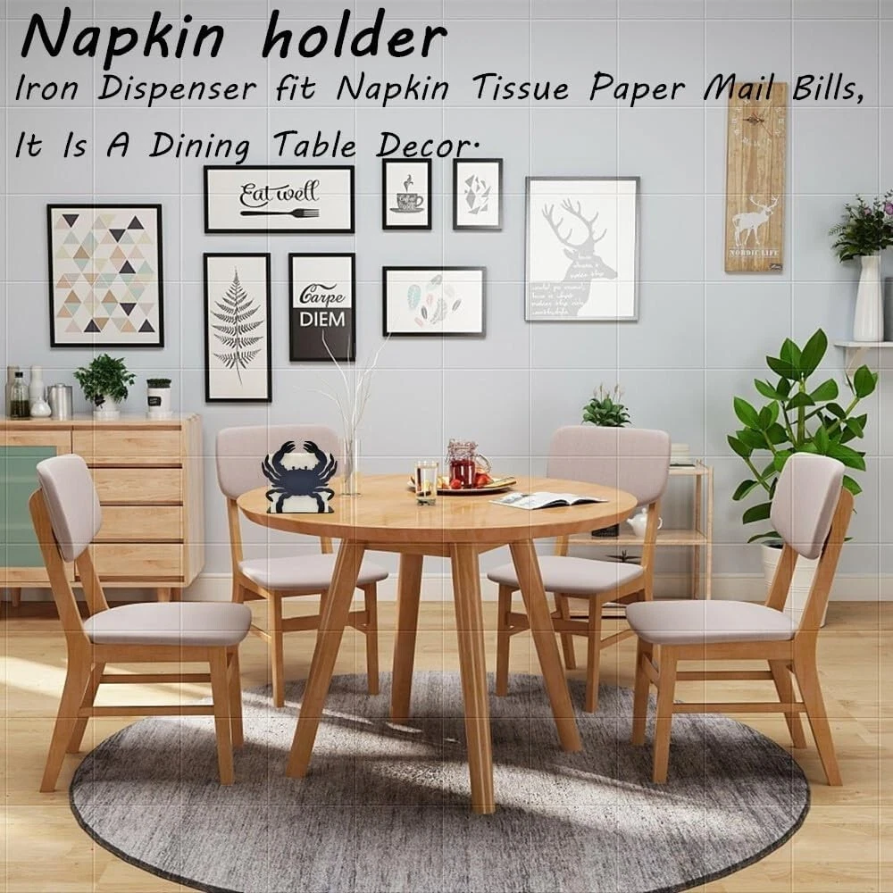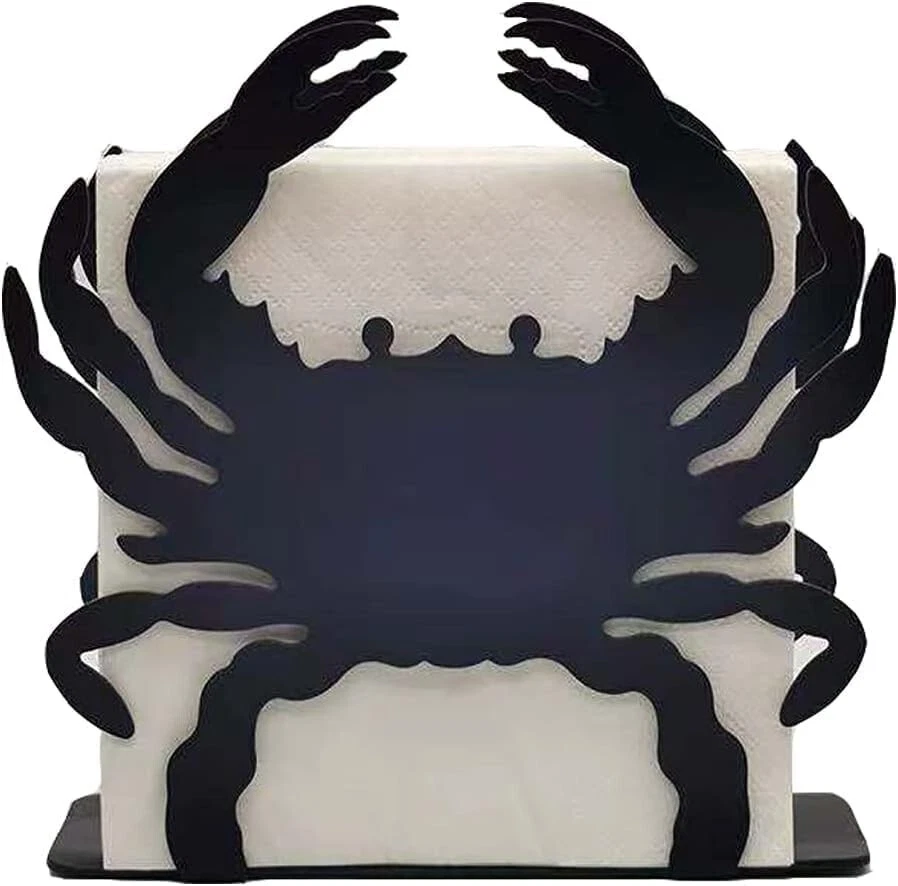 About this item ZZHMASPLAY Napkin Holder - 1.58"D x 5.43"W x 4.65"H perfect size is suitable to hold standard size square paper napkins. While its compact size allows you to conveniently display the napkin dispenser on a table or counter top surface Durable and Sturdy Construction: Made from wear resistant iron with finger-proof coating, which can effectively prevents fingerprint. Also with anti-slip bottom pad design, this napkin holder will not scratch the table top, very sturdy and durable to use. Simple and Elegant Home Decor: Stylish cutout metal Crab design, simple and elegant, suitable for a wide range of occasions such as kitchen, party, picnic and cafe. Ideal For Indoor & Outdoor - Use the free-standing tissue holder at the dinner table, or in the kitchen counter next to the sink. Also, can be used outside for a cocktail napkins, picnic or BBQ etc. This simple, elegant metal tissue dispenser is a great addition for daily use. Easy to Clean: For hassle-free clean up, the whole napkin holder is made of solid metal without small parts, just use running water to wash, or simply wipe with a rag, then you can make the napkin holder clean as new.