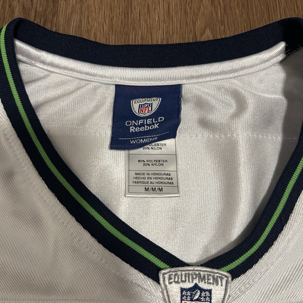 Embrace the spirit of the game with this Seattle Seahawks 12th Man FAN Jersey by Reebok, a must-have for any dedicated NFL enthusiast. Designed specifically for women, this size small jersey offers a comfortable fit with a classic white color that stands out in the crowd as you cheer on your team during the regular season. Officially licensed by the NFL, this jersey ensures you're decked out in genuine team pride. The breathable mesh material keeps you cool, while the iconic Seahawks logo and colors make your loyalty unmistakable. Whether you're at the stadium or watching from home, this jersey is a stylish way to support your favorite team all season long.