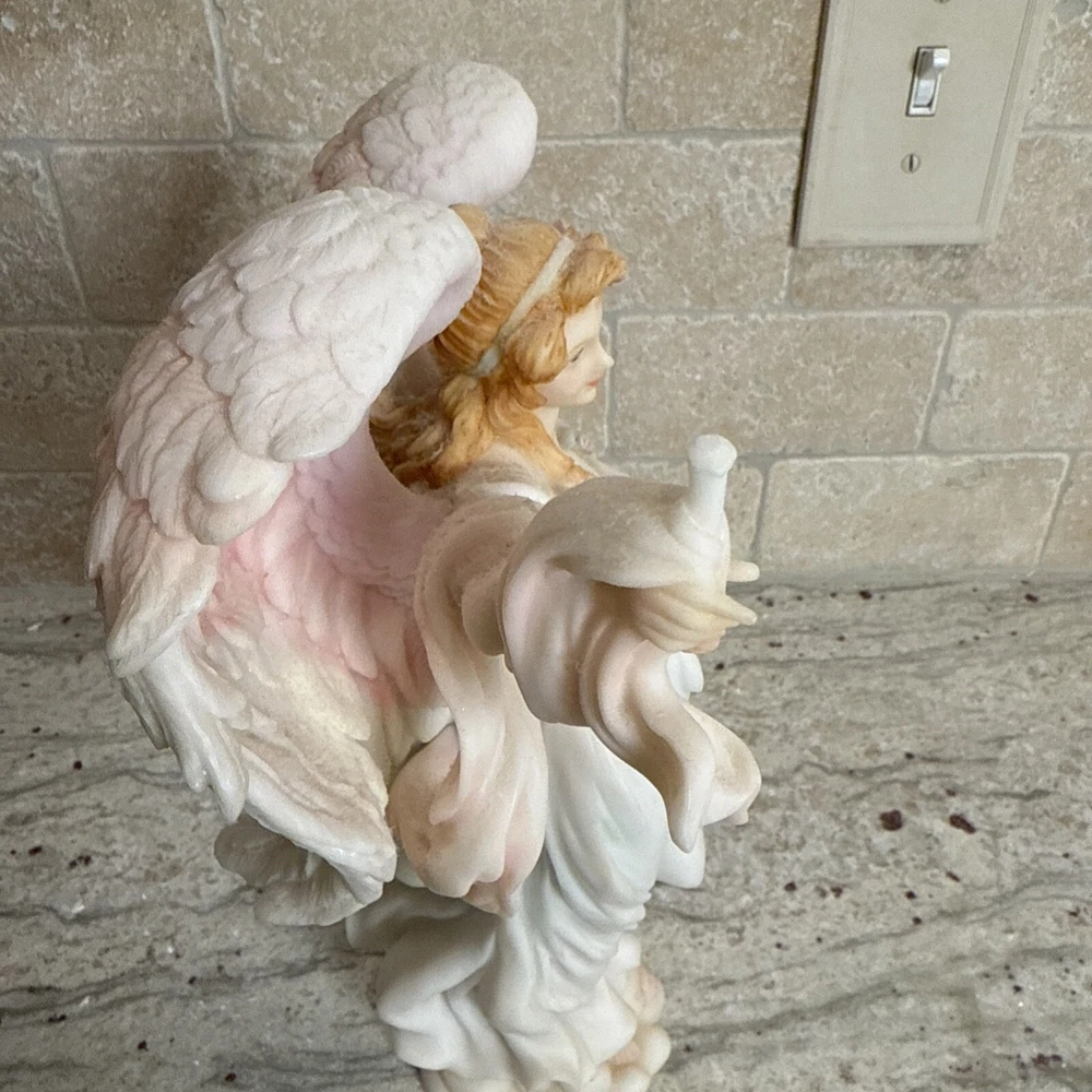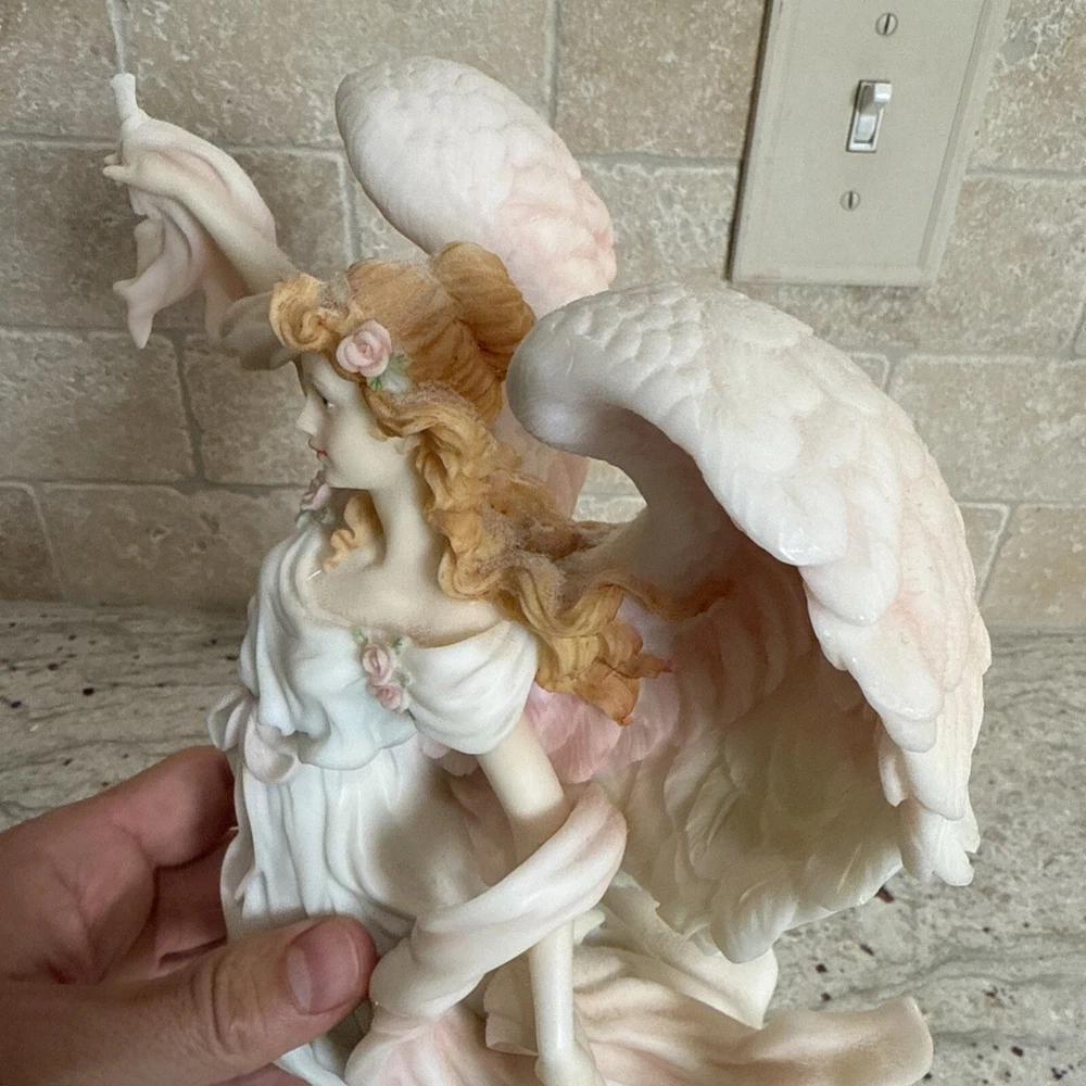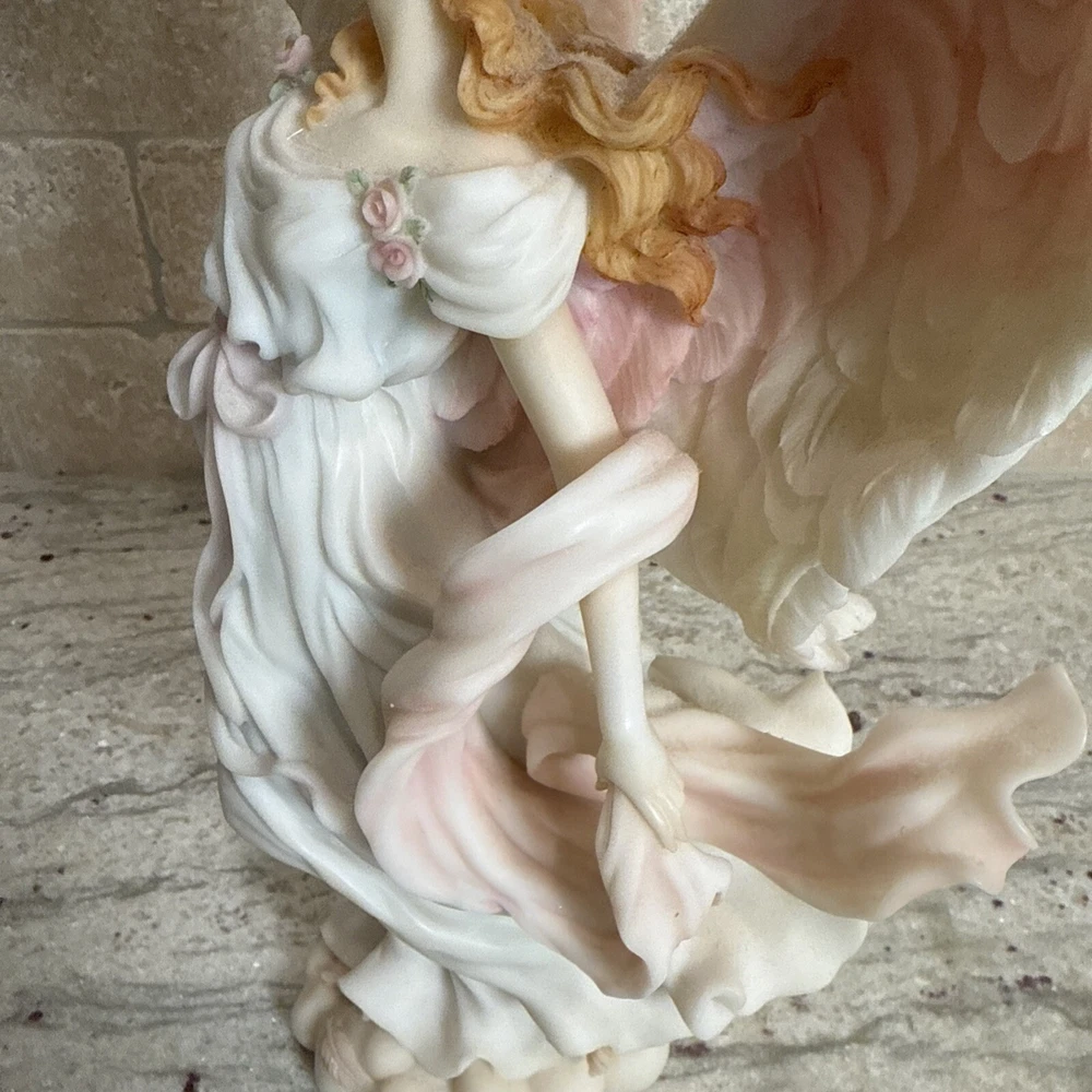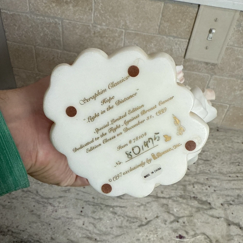 This beautiful figurine by Roman is a part of the Seraphim Classics collection and features a stunning angel design with the title "Light in the Distance". Measuring 12 inches in height and width, it is made of ceramic and porcelain materials with a natural finish. The multicolor design is perfect for all occasions and will add a touch of elegance to any room. The figurine is perfect for collectors and makes a great gift for teens, boys, adults, and girls. It is not signed and has no pattern or engraving. The model number is 78104 and it was manufactured in China during the 1990s. This Roman-style figurine is a great addition to any decorative collection and is sure to bring joy to any viewer.