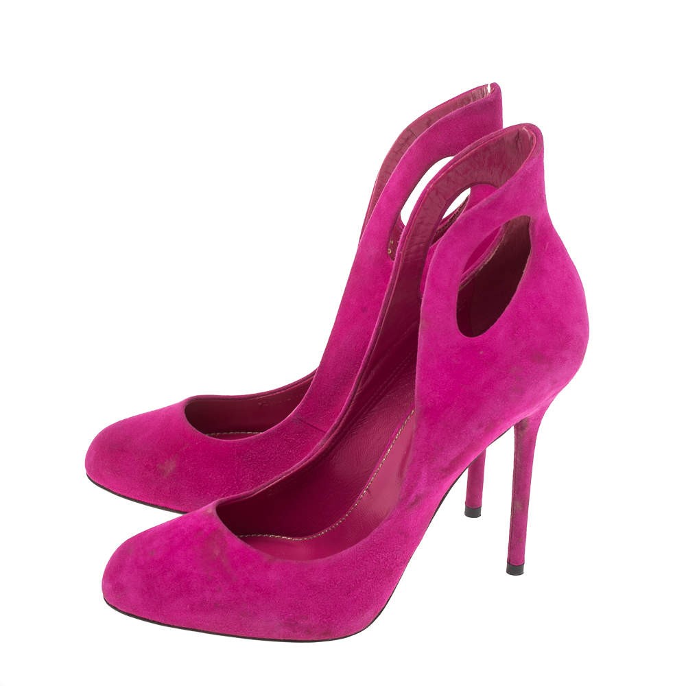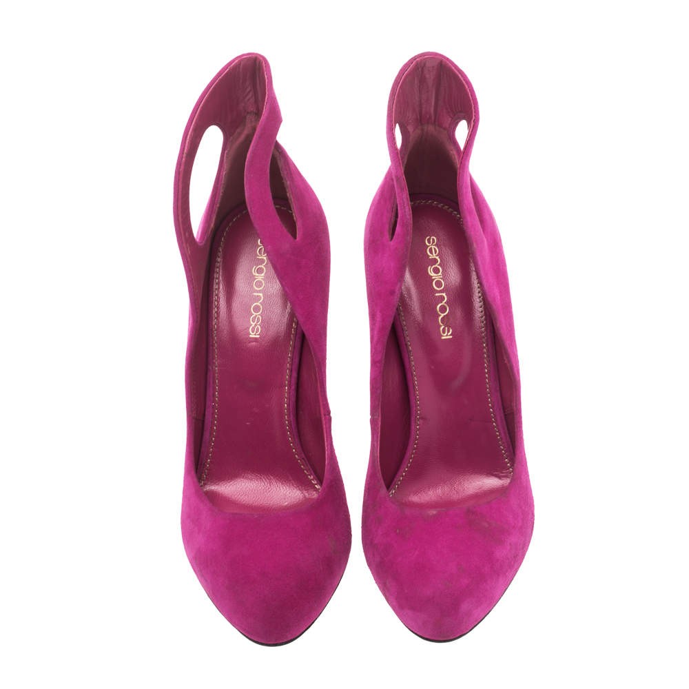 Our eBay Store About Us Contact Us Add to Favorite Sellers Sergio Rossi Magenda Suede Oblo Cut Out Pumps Size 36 How gorgeous are these pumps from Sergio Rossi! These magenta sandals are crafted from suede and feature a round toe silhouette. They flaunt cutout detailed counters. They come equipped with comfortable leather-lined insoles and 11 cm heels. They'll look great with your knee-length dresses and chic jumpsuits! Product Details Brand Sergio Rossi Color Pink Includes The Luxury Closet Packaging Size 36 Outsole Length 21 cm Outsole Width 7.5 cm Certified by The Luxury Closet This item has gone through a detailed authentication process overseen by our experts. We offer a lifetime guarantee of authenticity on all our items. How We Check The in-house team of experts at The Luxury Closet is highly trained to verify the authenticity and the condition of the luxury products. They ensure that only 100% authentic items are put on sale.The evaluation process is unique with its own mix of assessment criteria and differs according to the category. Each item is evaluated based on the following combination of hallmarks, hardware, stitching, symmetry, material, craftsmanship, stamping, codes, hologram stickers, and packaging. Our authenticators also check if the items have been modified or amended (e.g., aftermarket diamonds, replaced batteries, repaired bags, etc.) International Buyers Import duties, taxes and charges are not included in the item price. These charges are the buyers responsibility. Please check with your country’s customs office to determine what these additional cost will be prior to buying.